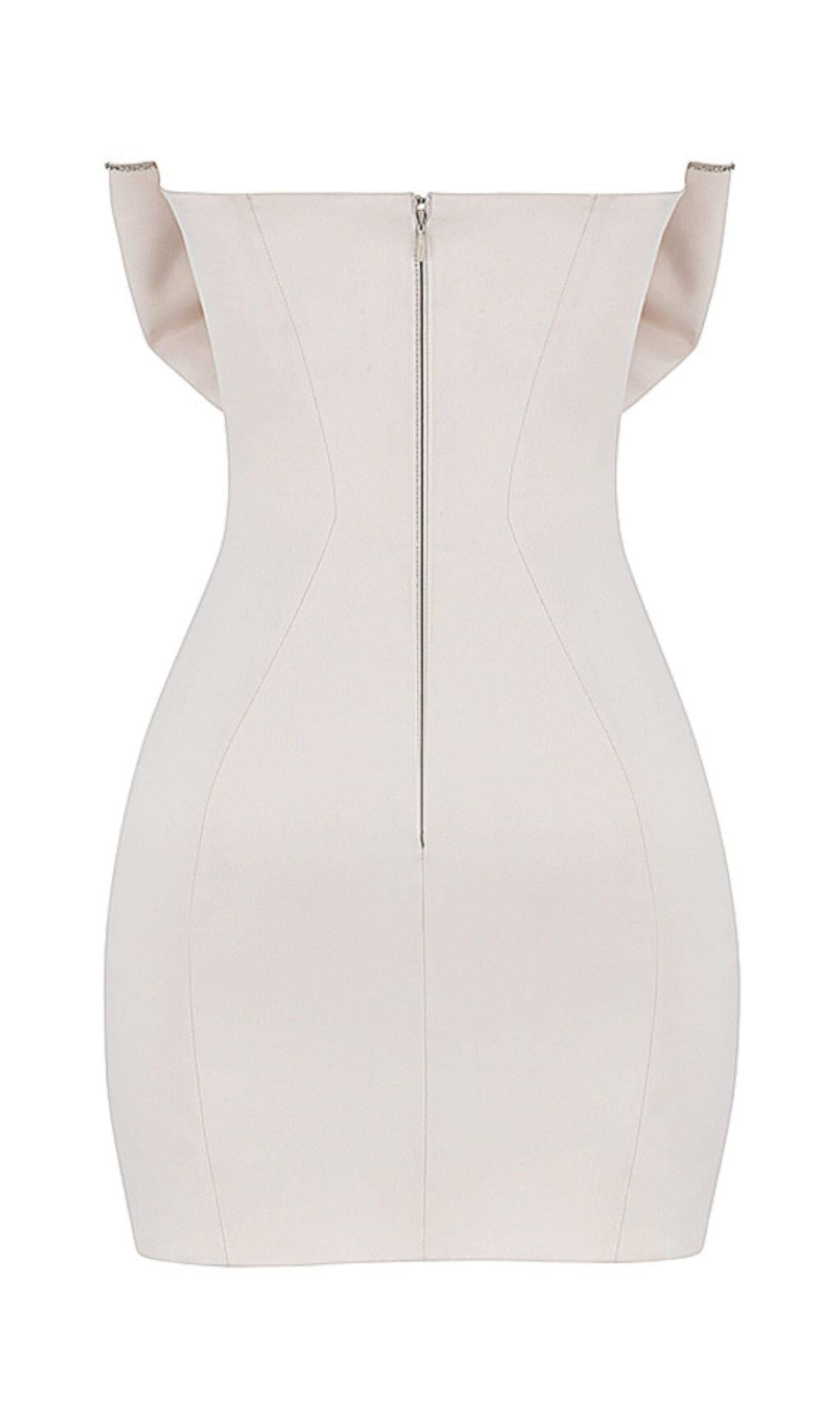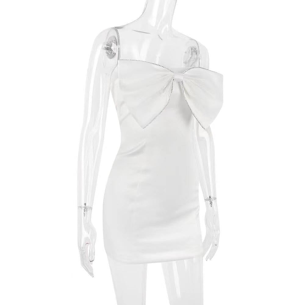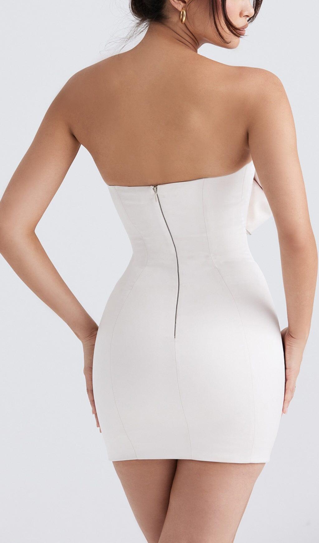 IVORY SATIN CRYSTAL EMBELLISHED BOW DRESS