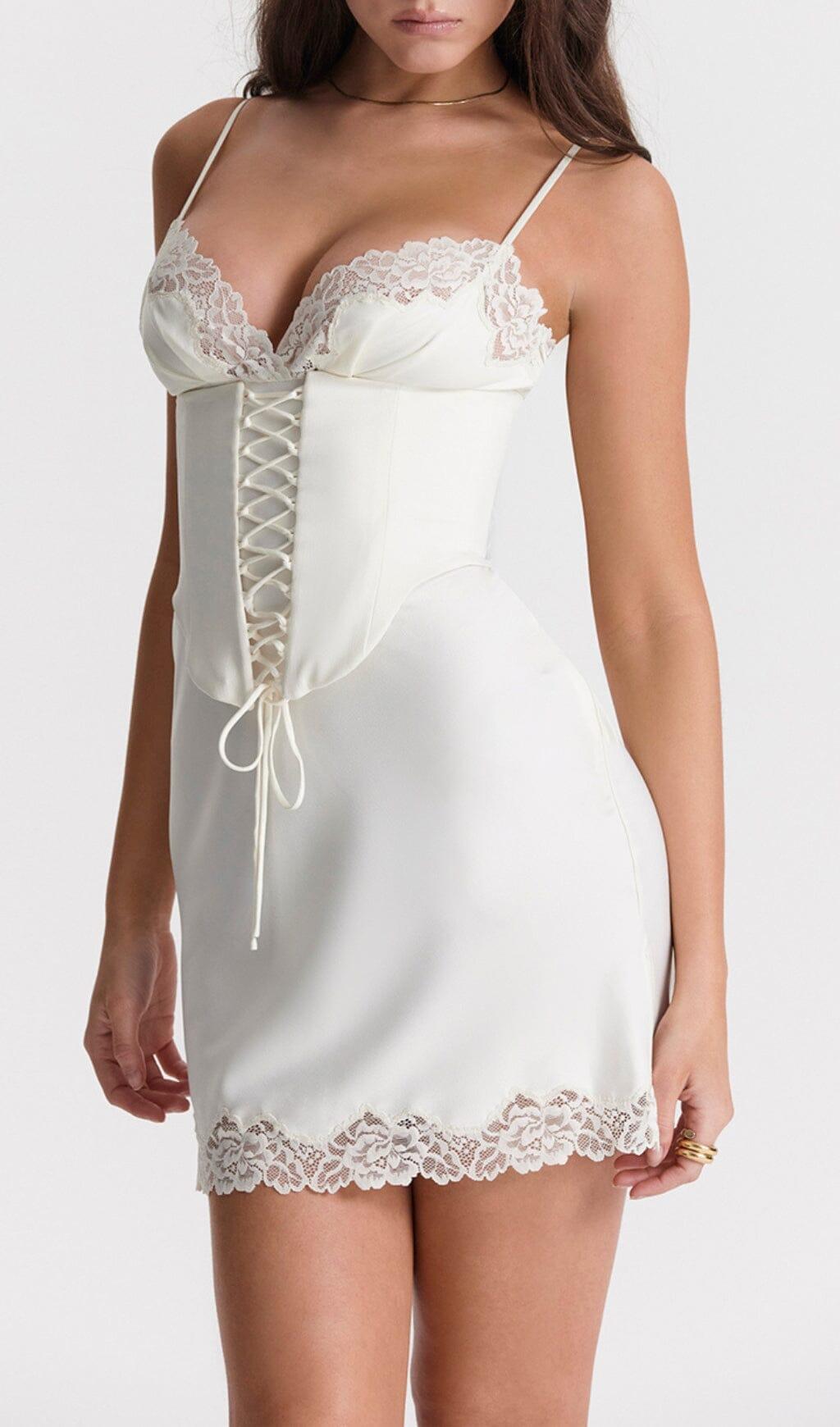 • Made from ultra light duchess satin with lace trim and cotton twill