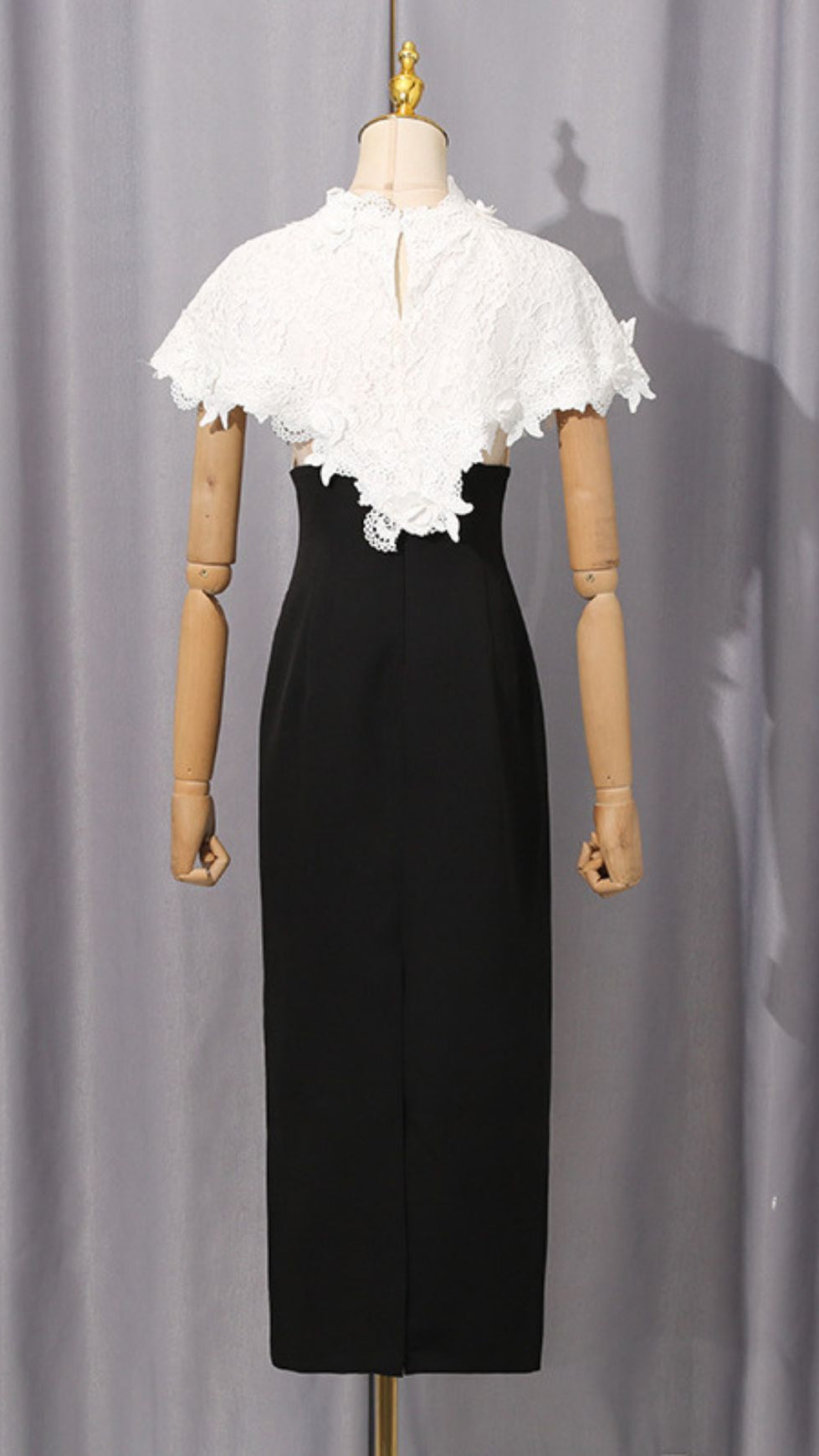 • Detachable Ethereal Lace Capelet: A truly unique feature, the intricately detailed white lace capelet offers versatile styling. Wear it for an air of romantic mystery, or remove it to reveal the sleek black dress underneath, transforming your look instantly.