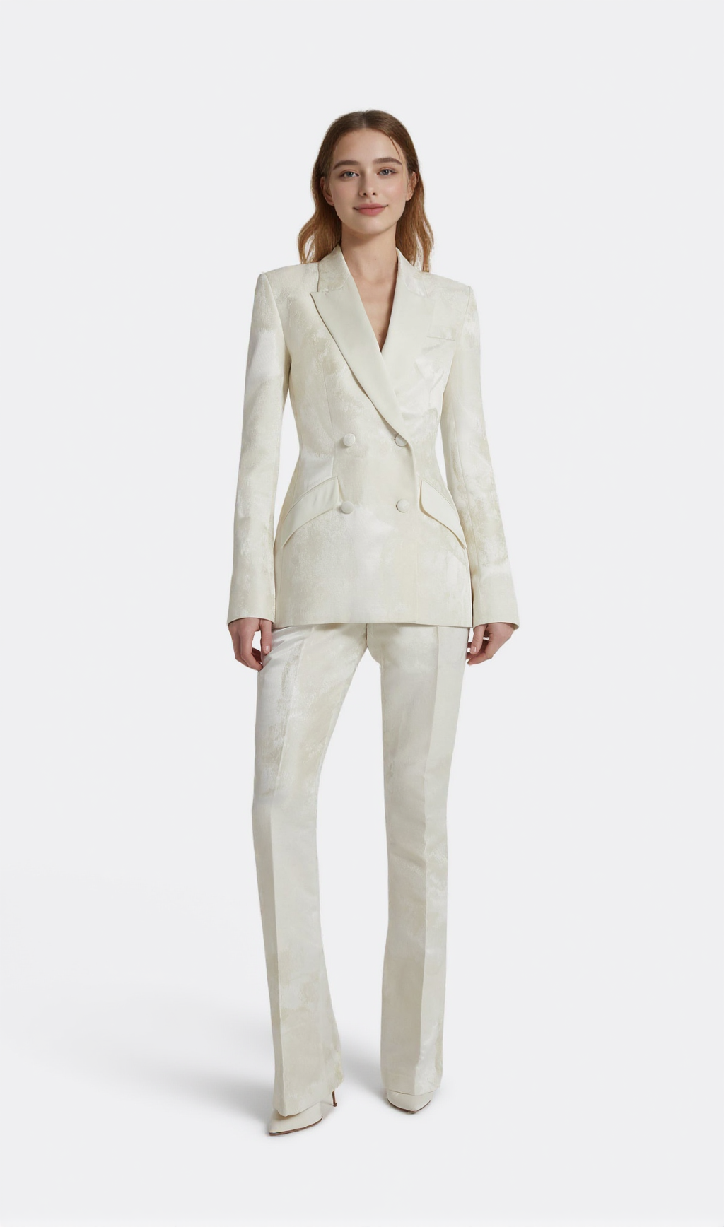 jacquard double-breasted blazer suit in ivory