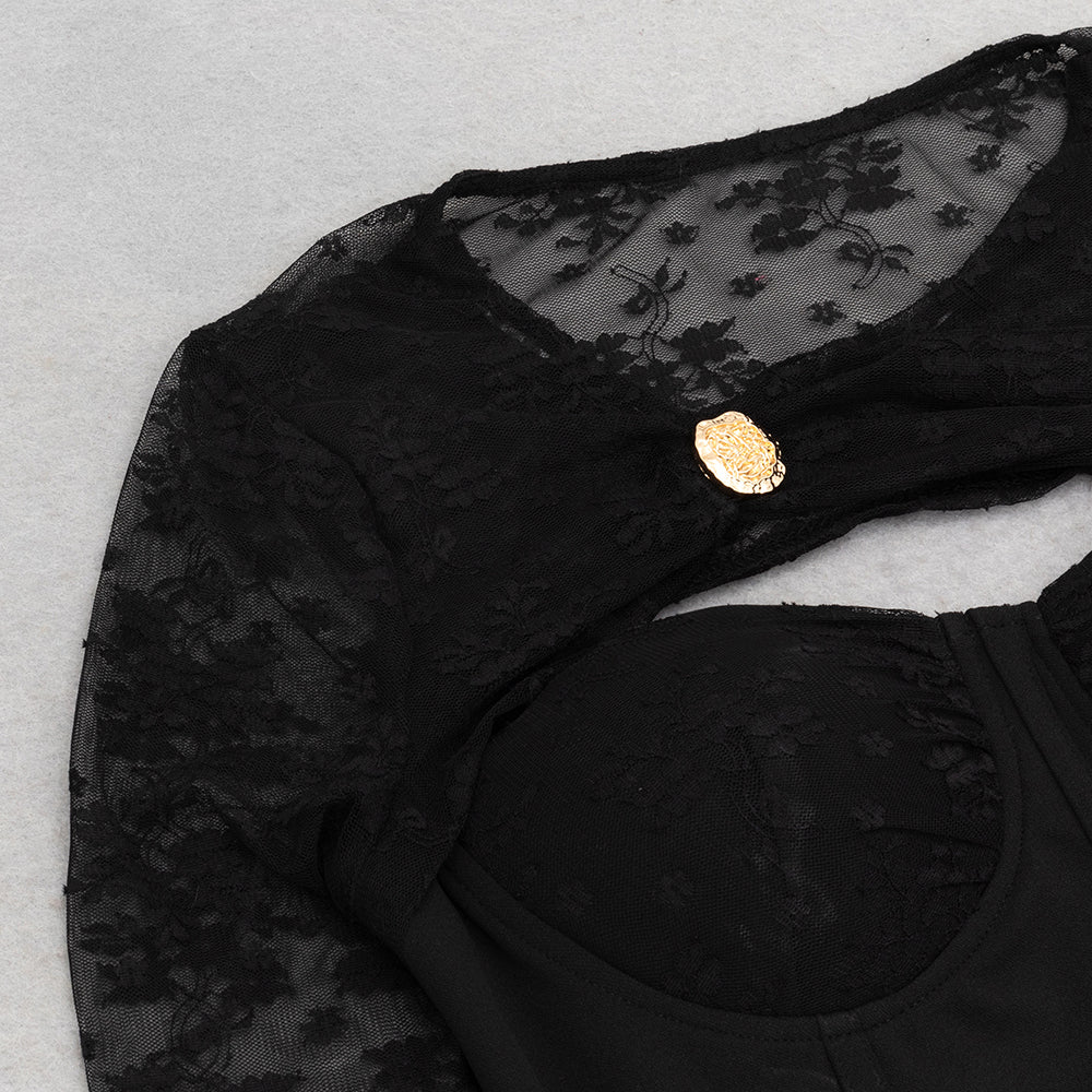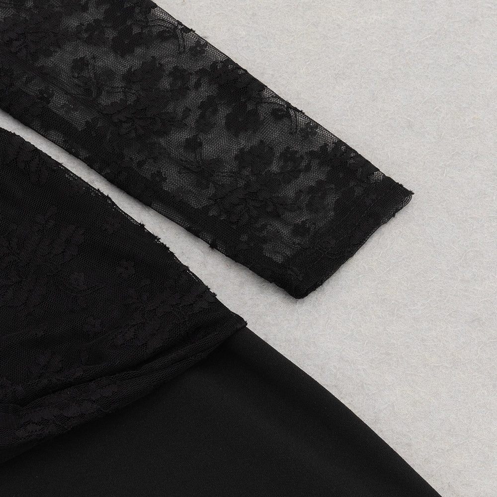 JACQUELINE TULLE SLEEVE BANDAGE MAXI DRESS IN BLACK