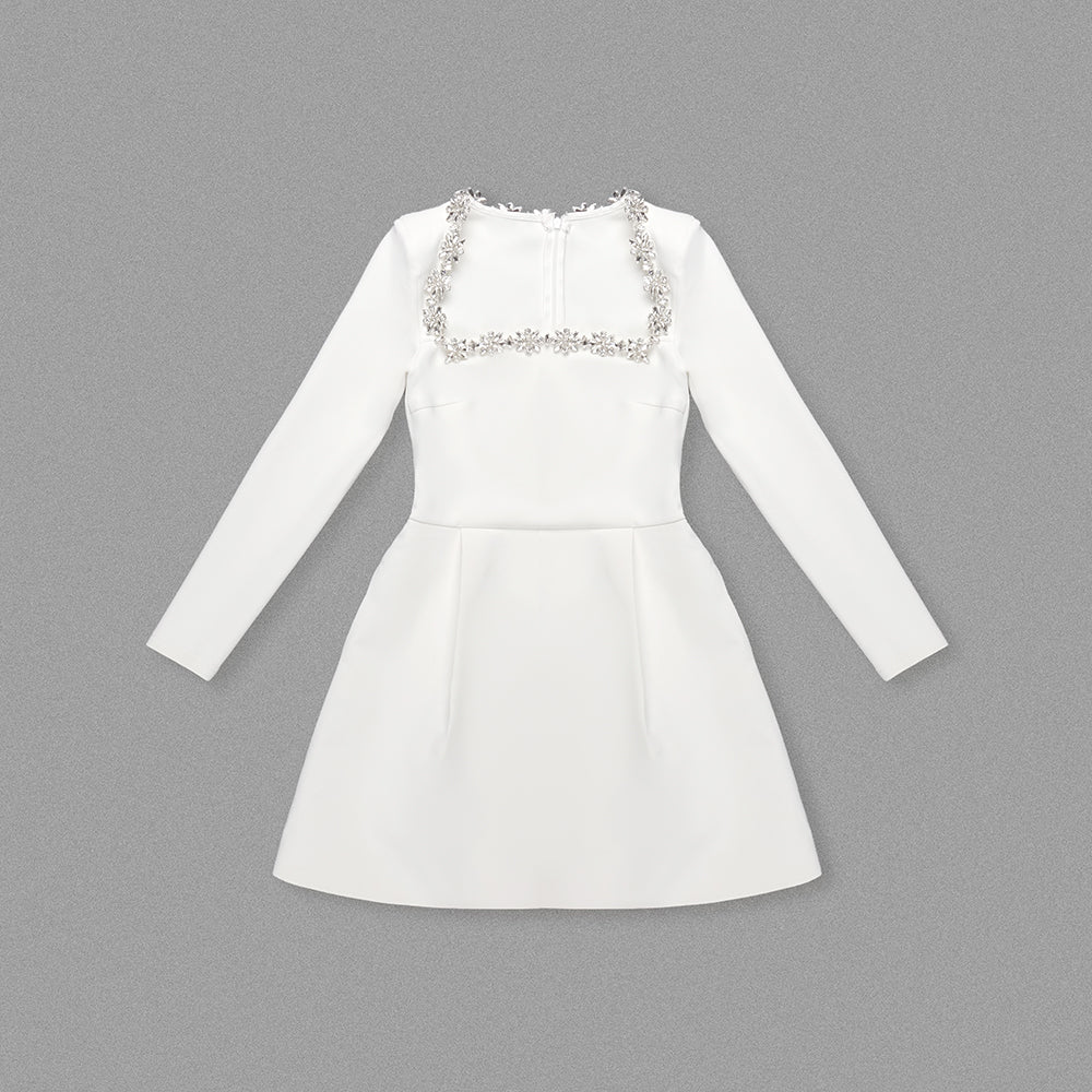 JEWEL-EMBELLISHED TRIM MINI DRESS IN WHITE