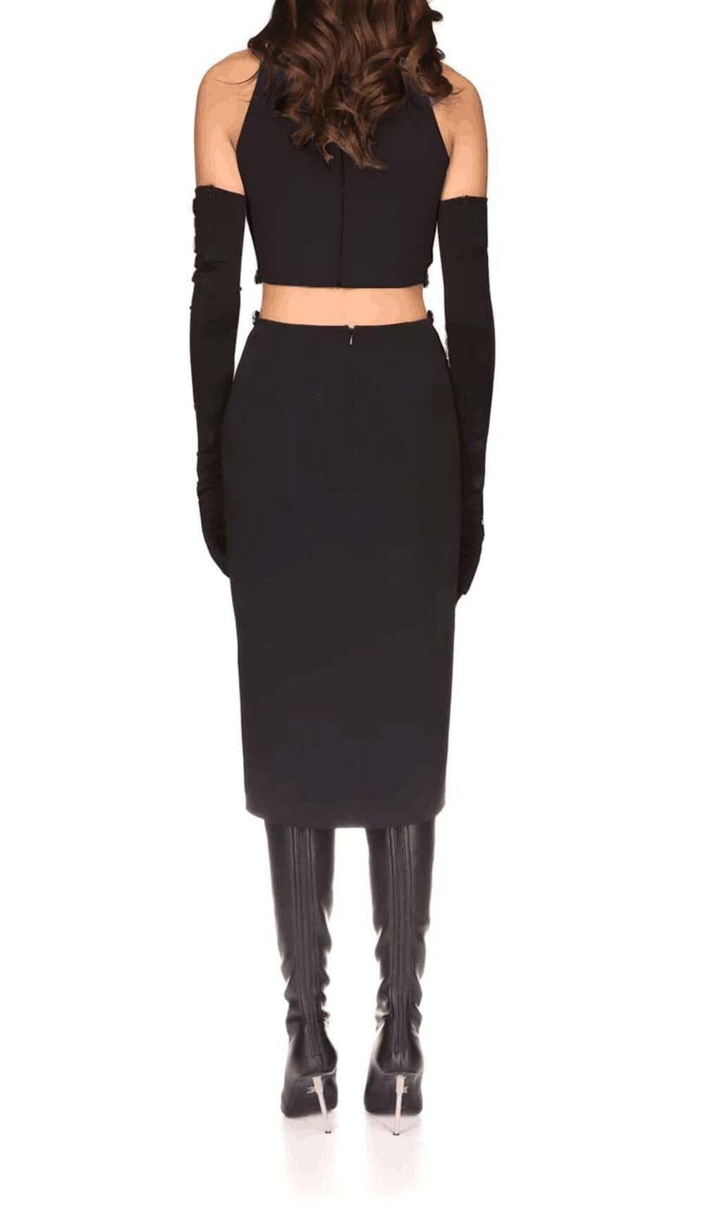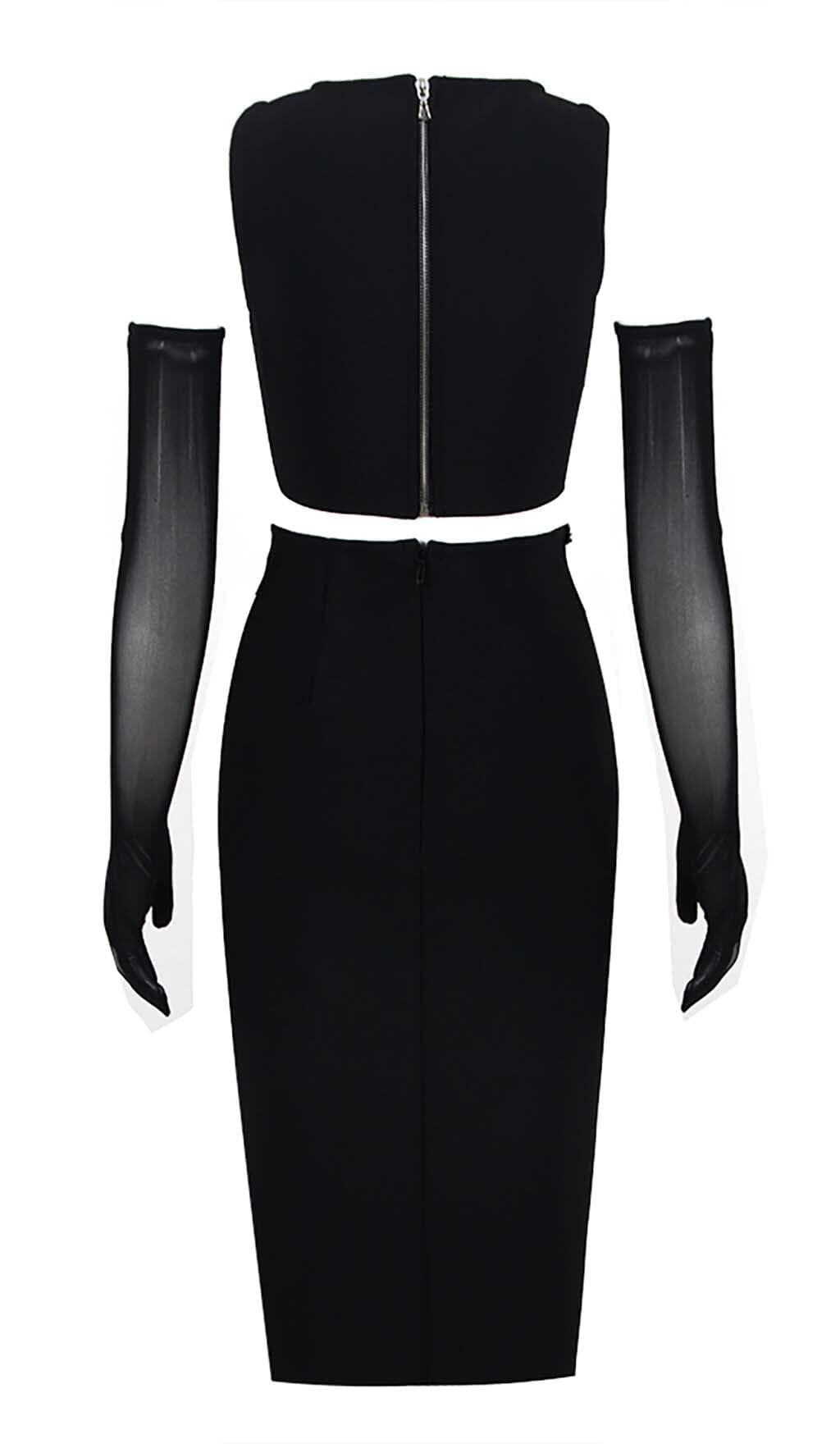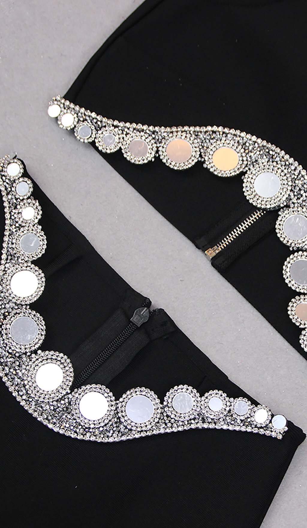 JEWELLED TENTACLE TWO PIECE SUIT IN BLACK