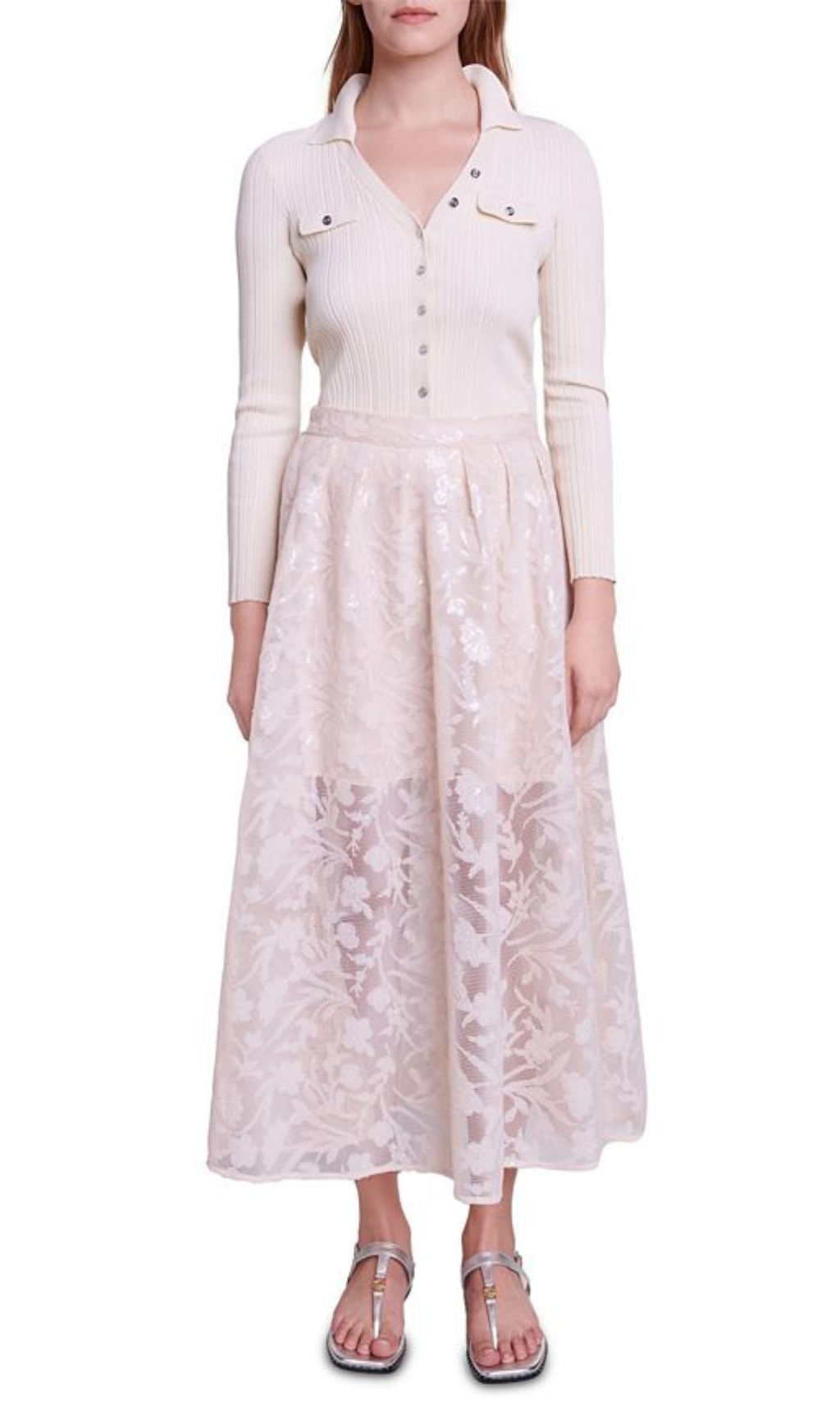 • Allover floral embroidery with sequins