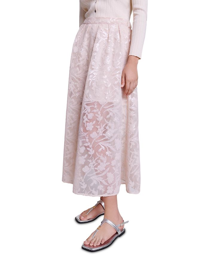 JUPON MESH FLORAL EMBROIDERED MAXI SKIRT