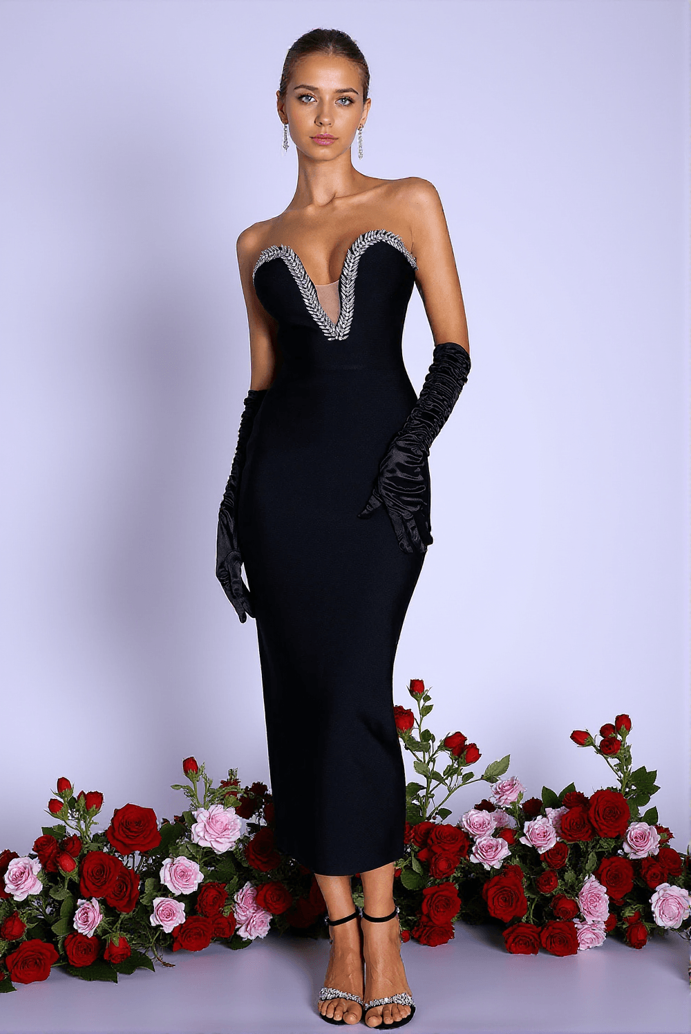 The Kaelin Floral Corset Rhinestone Maxi Dress is designed to be both stunning and comfortable, ensuring you feel confident and beautiful from any angle. Whether it's a wedding, gala event, or an evening out with friends, this dress will make your special moment unforgettable.