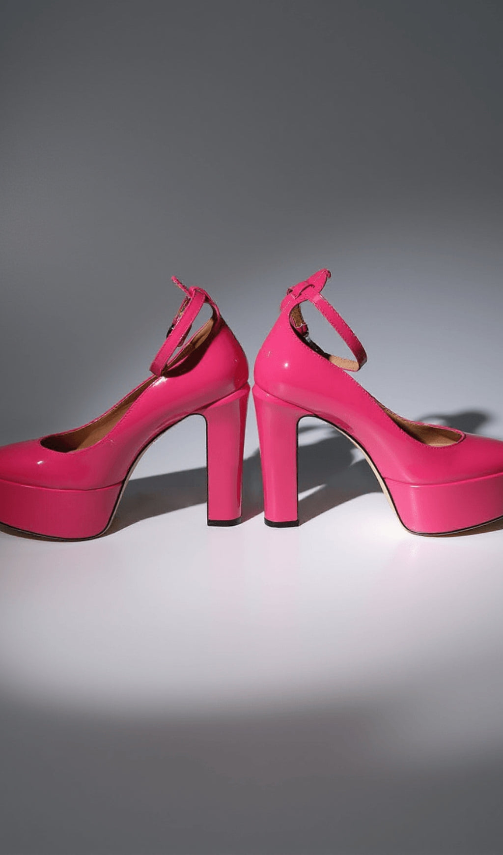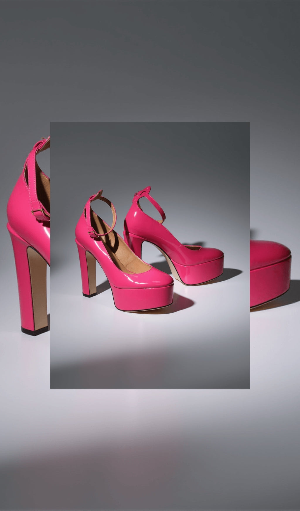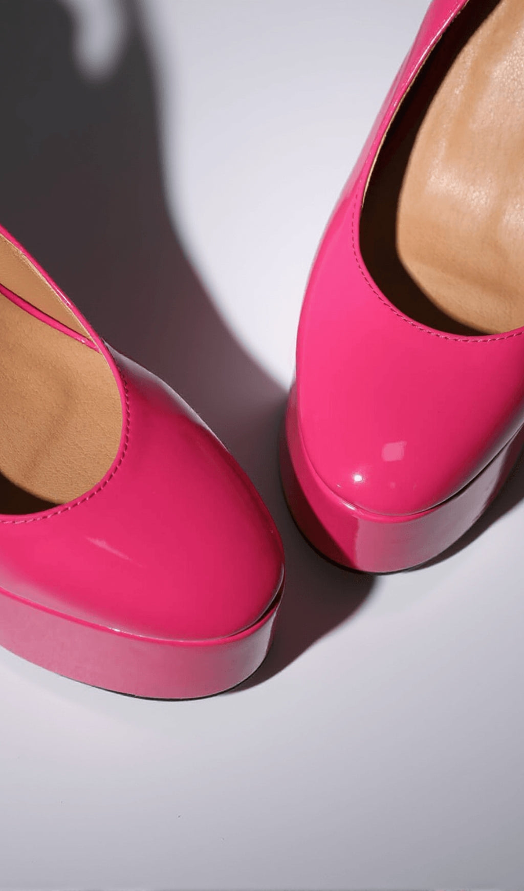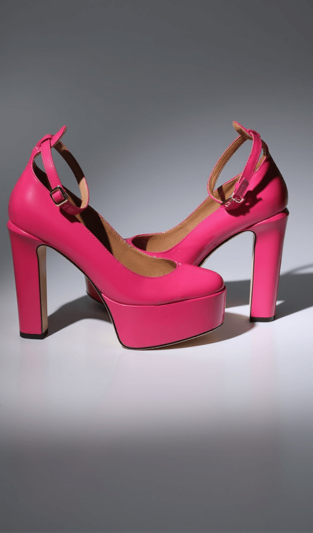 Introducing the Kalea Leather Platform Heels In Hot Pink: