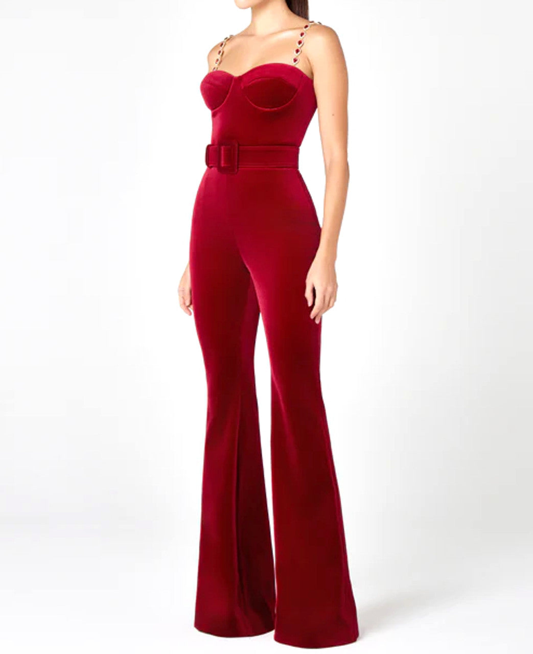 Kalene Diamante Chain Velvet Jumpsuit