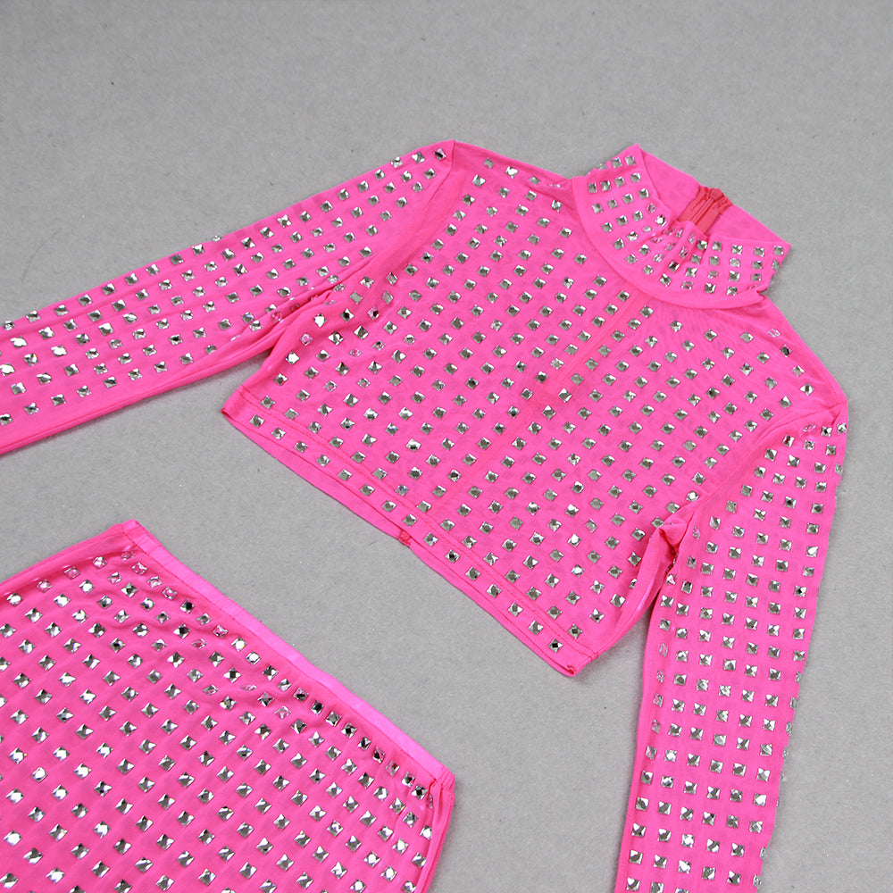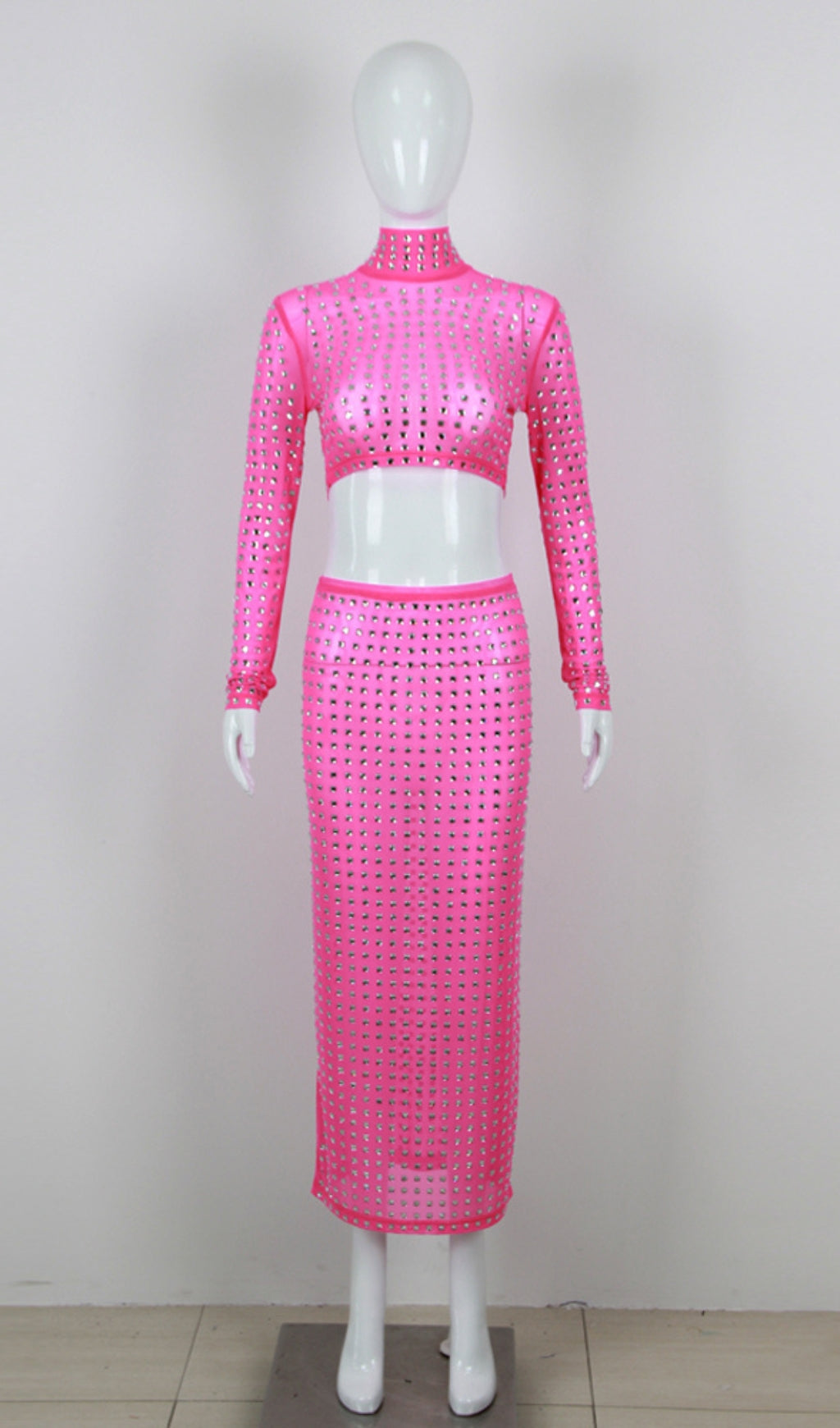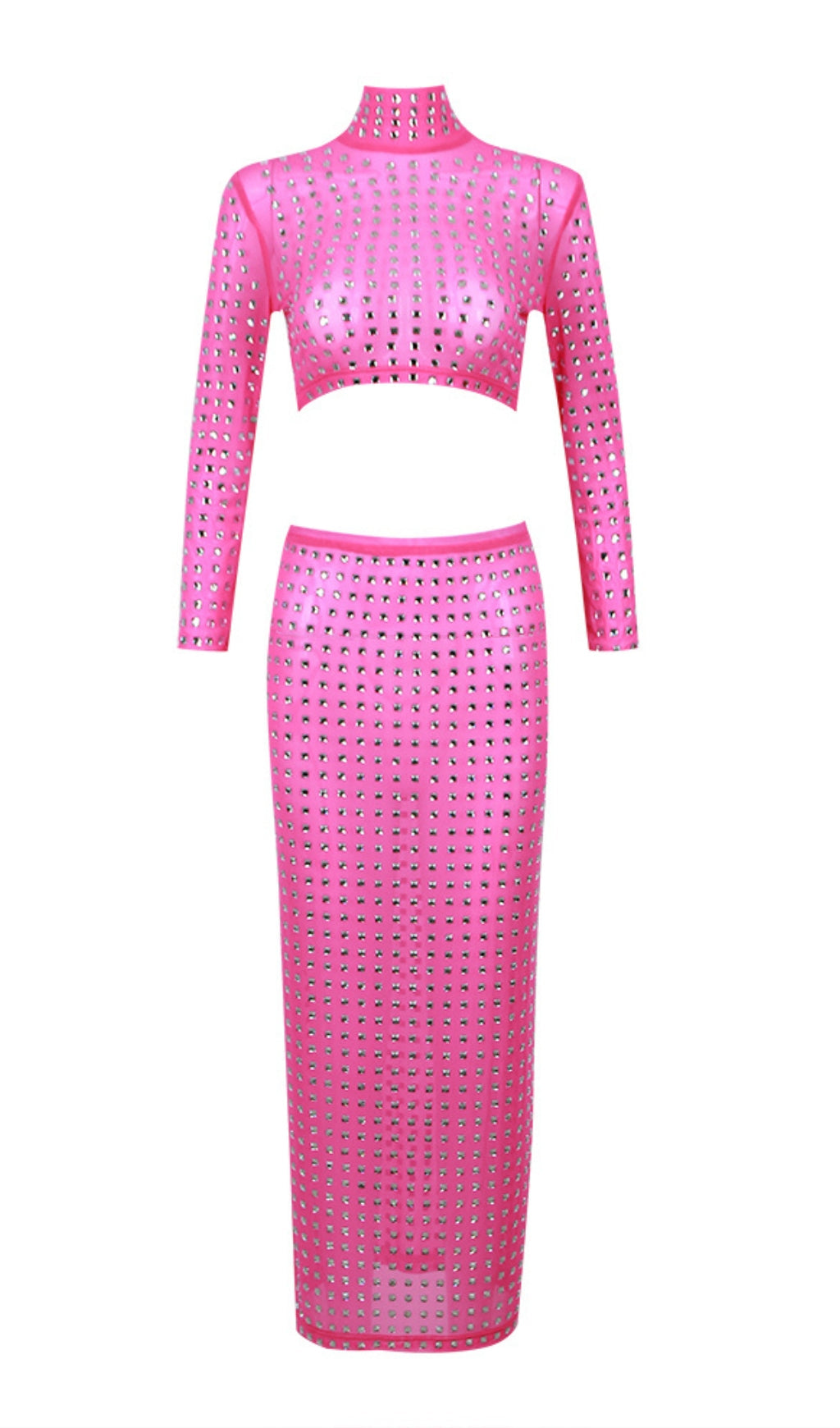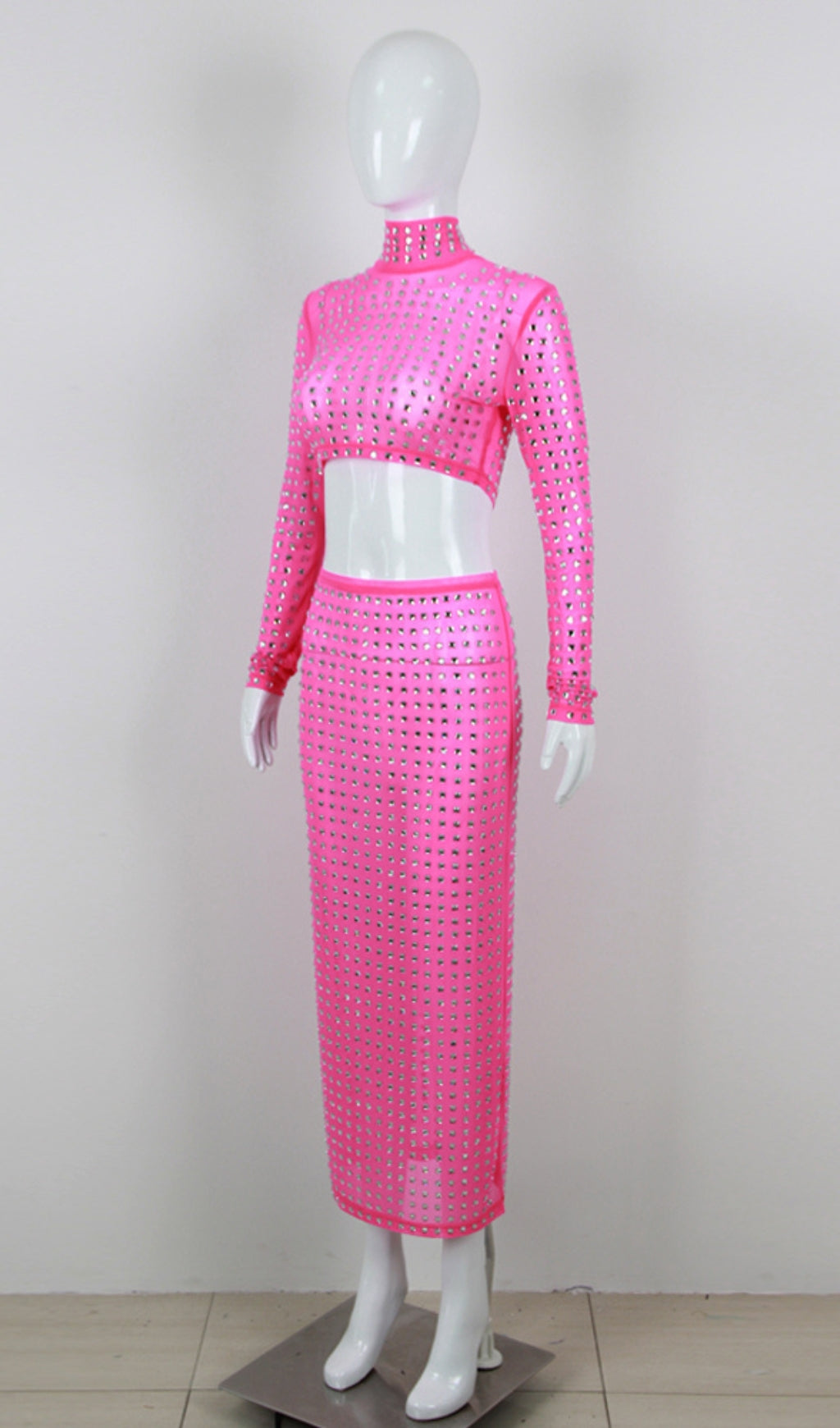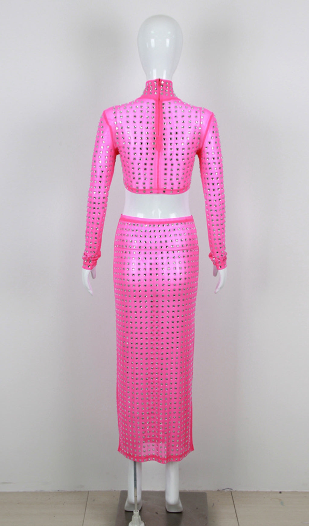 Feel your best with the Embellished Split Mesh Skirt Set! Its vibrant hot pink color is sure to turn heads, while its embellished material adds a touch of elegance. Perfect for any occasion, you're sure to love it!