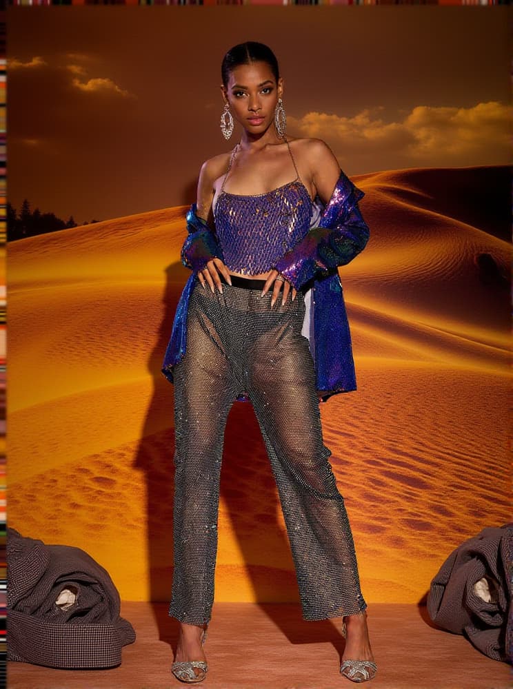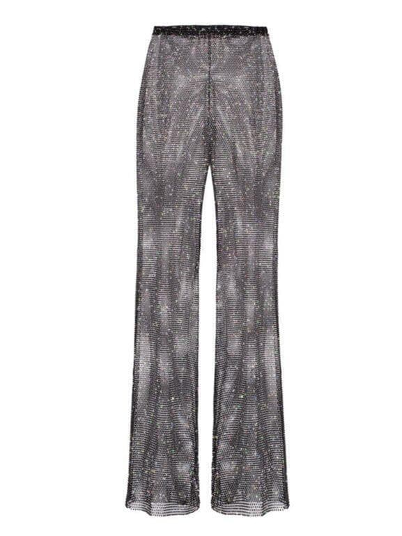 Give your look a serious update with these bottoms. The Kataleya Mesh Diamond Pants In Black features a black mesh material with diamante detailing and a wide-leg fit. Style these with an oversized t-shirt, court shoes and a belt to cinch in the look.