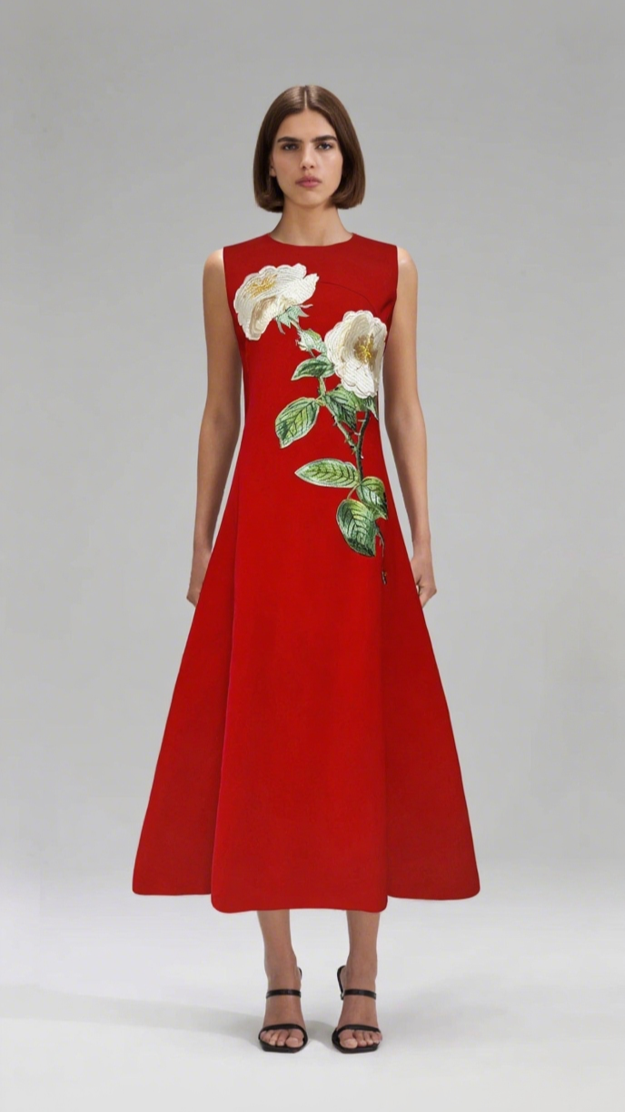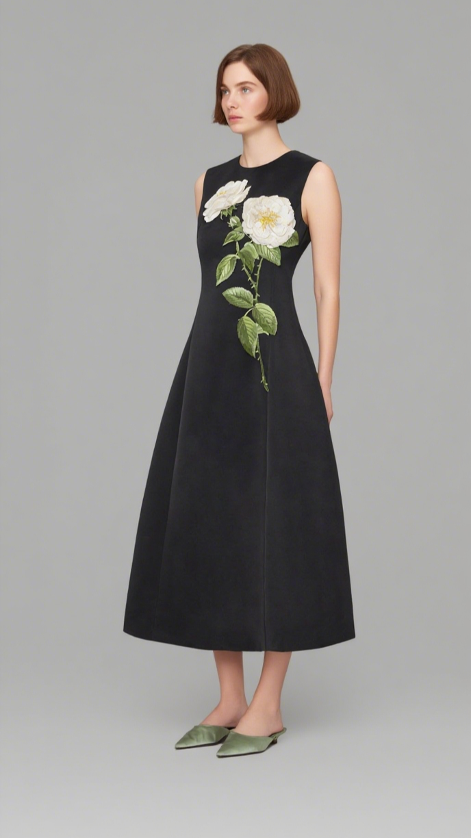 kate floral print Embellished Sleeveless Midi Dress in black