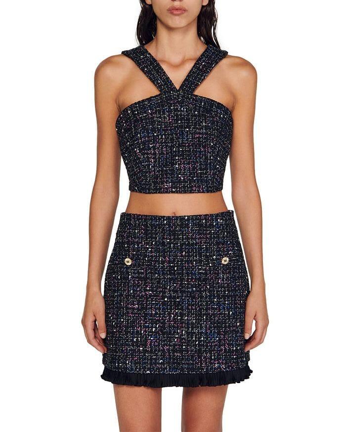 • Allover tweed, multicolored accents