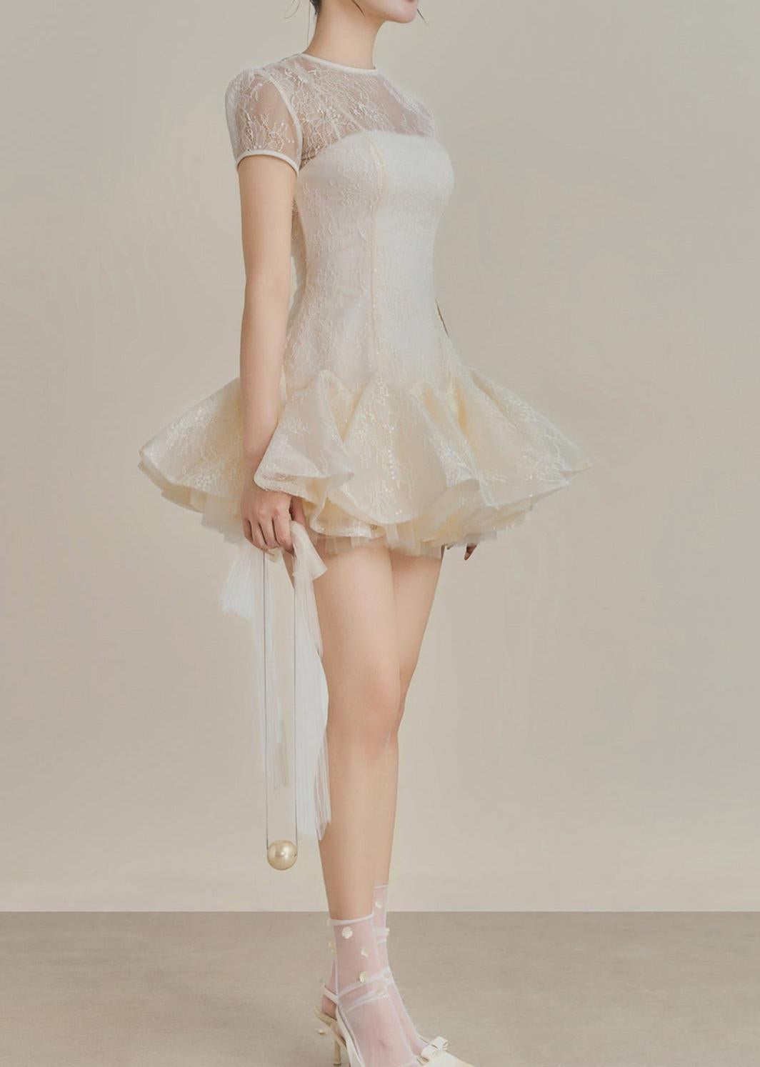 Elevate your evening wardrobe with the Kelly Sequin Lace Puffy Mini Dress in White. This expertly crafted dress features delicate lace adorned with shimmering sequins, creating a sophisticated yet playful texture. The puffy silhouette adds volume and a modern edge, while the mini length highlights your legs for a confident, stylish look. Perfect for special occasions, this dress combines intricate detailing with a flattering fit to ensure you stand.