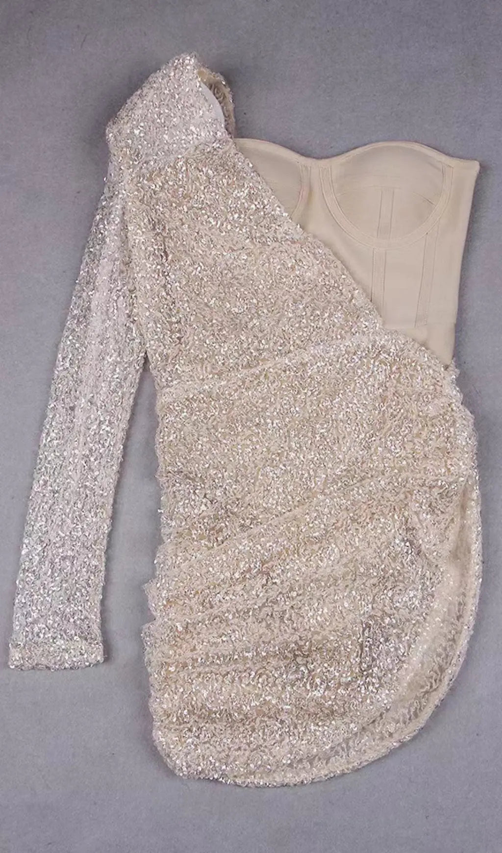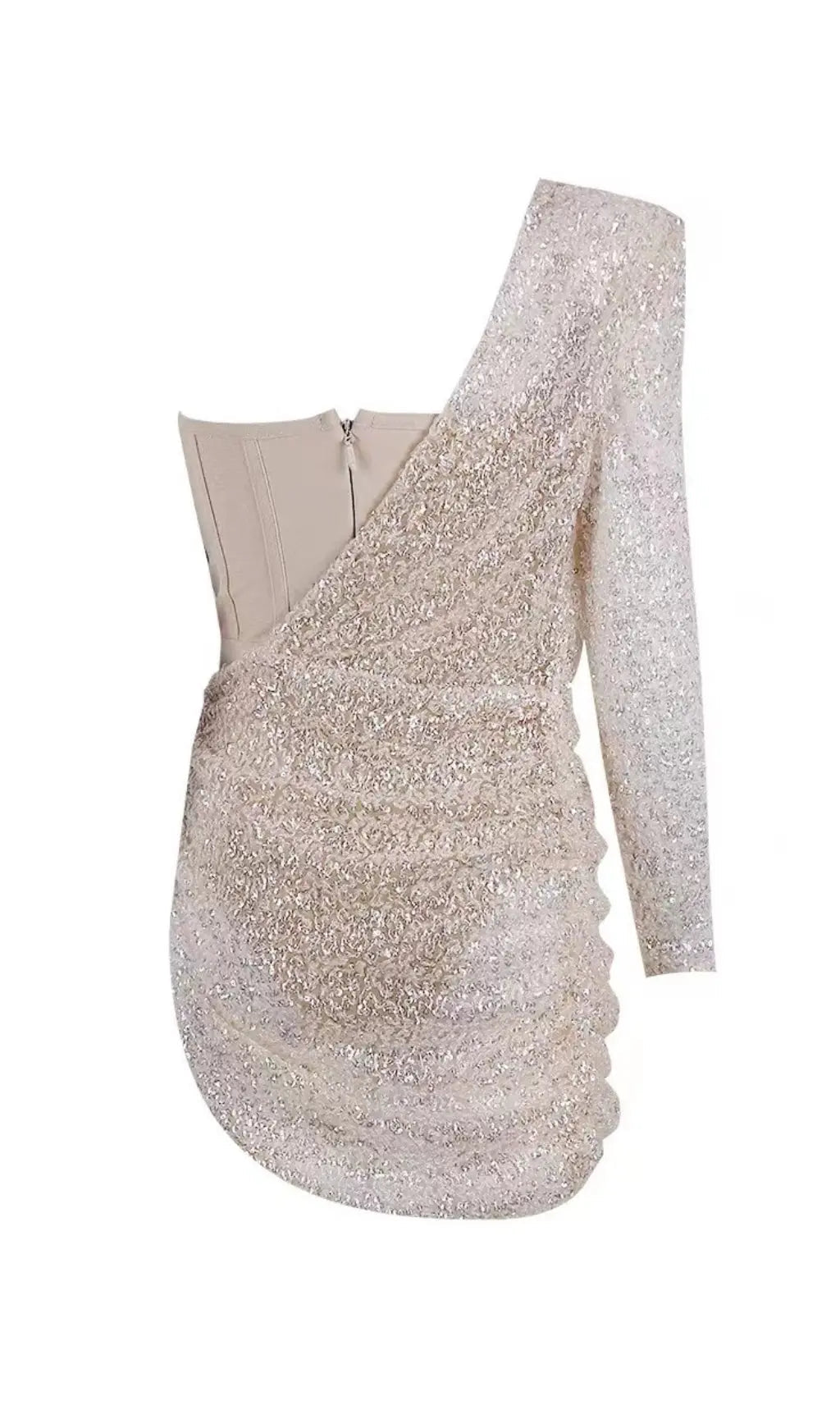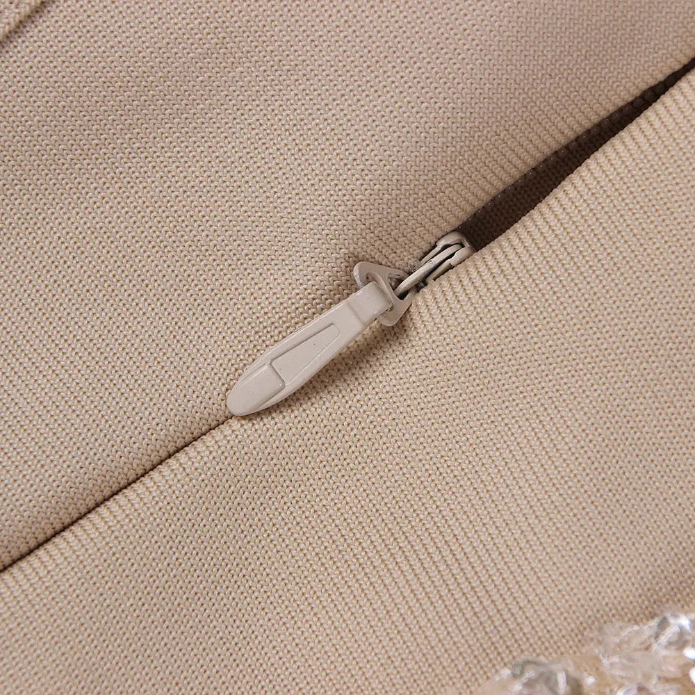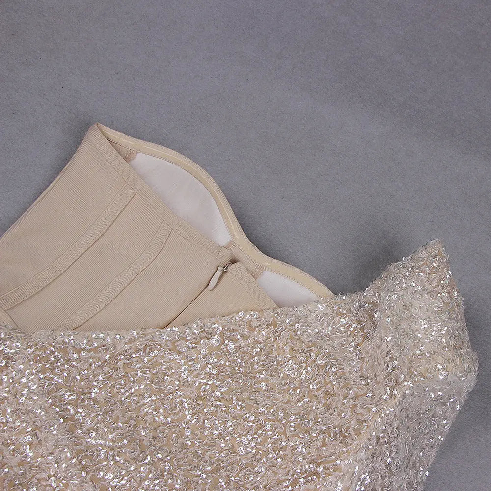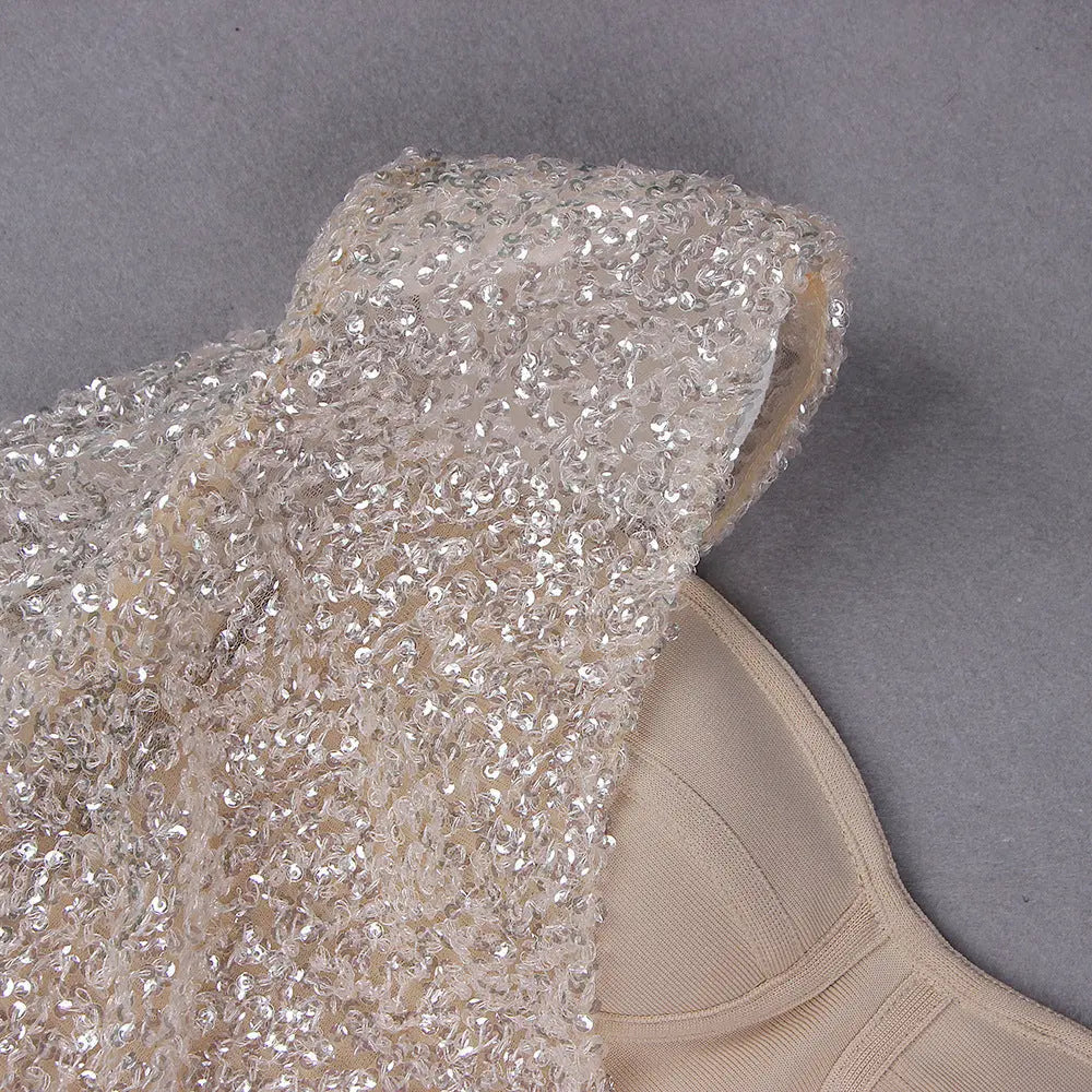 KHAKI SHINY SEQUIN BANDAGE MINI DRESS