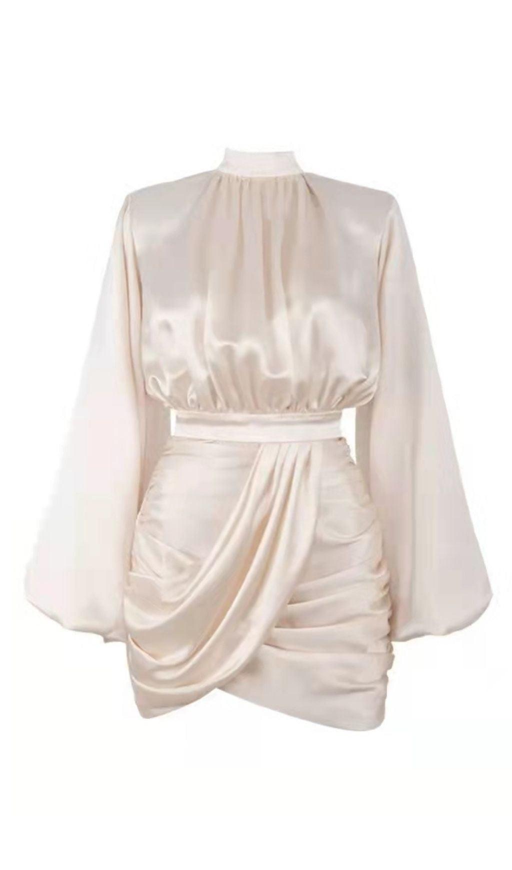Elevate your wardrobe with our Ivory Satin Blouson Dress. Made from lustrous heavyweight ivory silk satin, this dress exudes luxury and elegance. The blouson shape is not only fashionable but also incredibly wearable, making it perfect for any occasion.