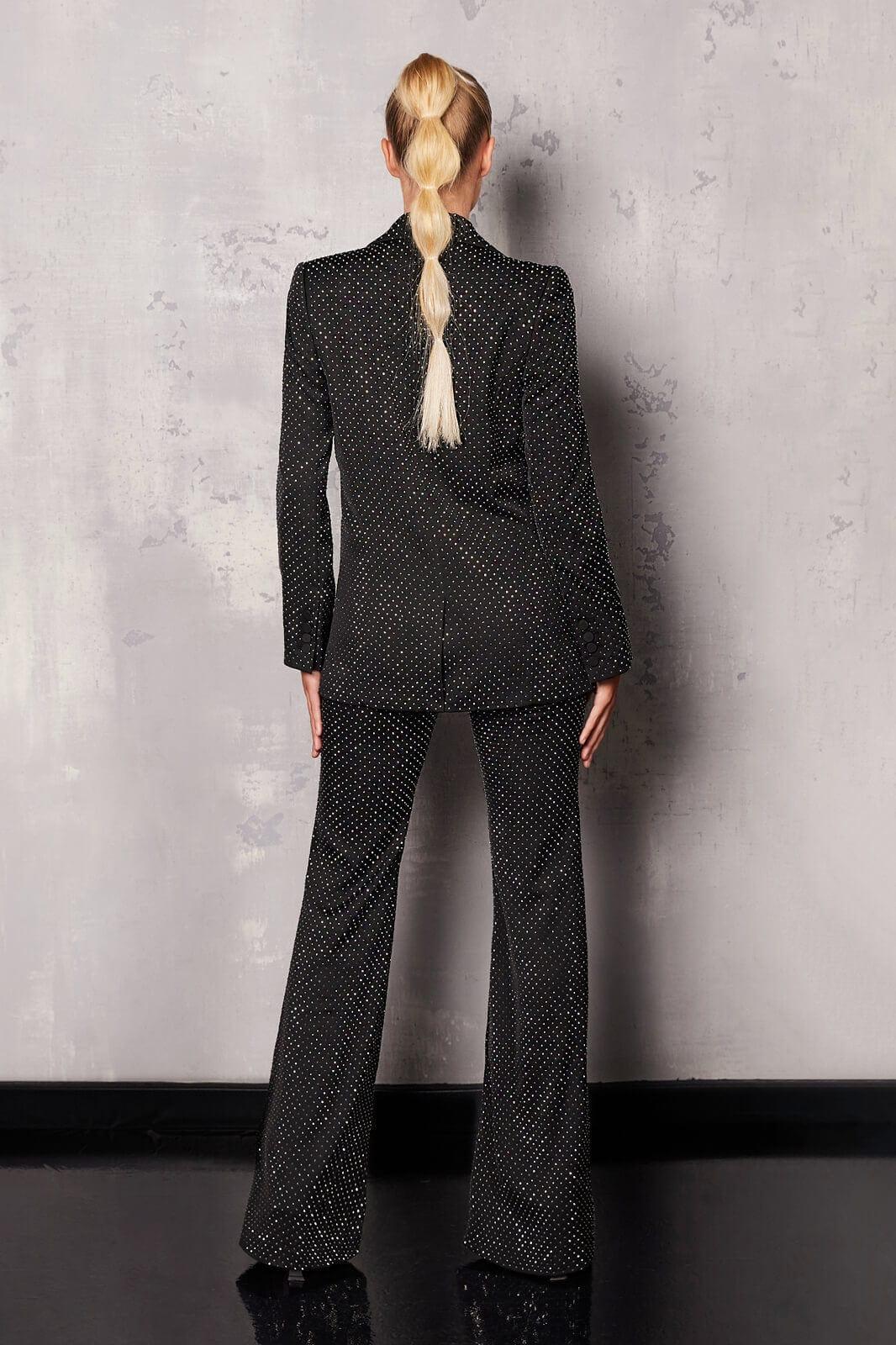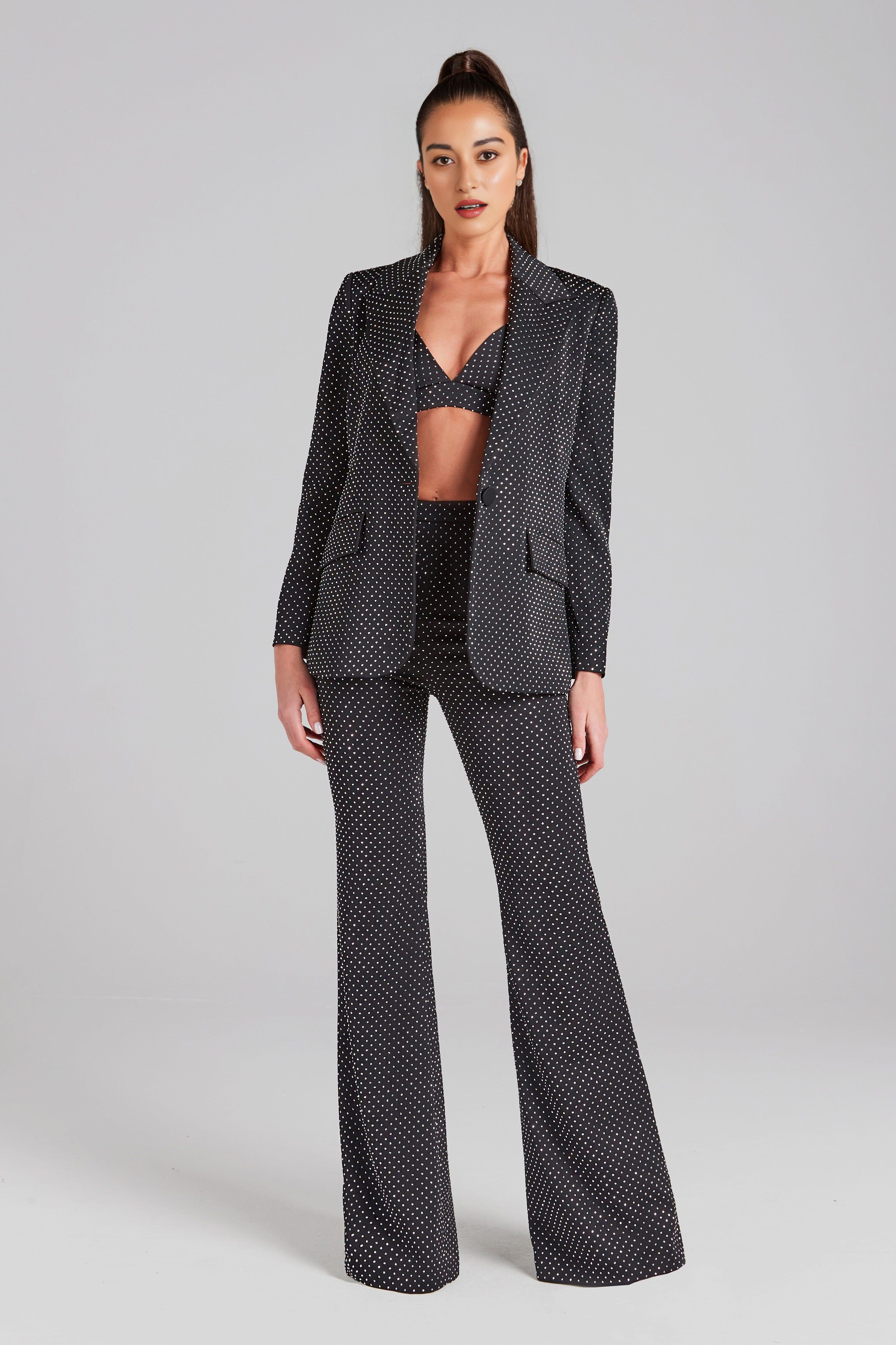 Elevate your style and make a statement with the BLINGBLING Blazer Three-Piece Suit. Whether you're attending a special occasion or going out for a night on the town, this suit is designed to make you shine. The crystal embellishment and figure-skimming cut add a touch of glamour and elegance, while the wide leg hem adds drama and style. With a perfect fit and comfortable design, you'll feel confident and ready to take on the world. Complete the look with the matching bra top and pants, or mix and match the pieces for different looks and styles. Available in a range of sizes, this suit ensures that everyone can look and feel their best. Stand out from the crowd and make a lasting impression with the BLINGBLING Blazer Three-Piece Suit.