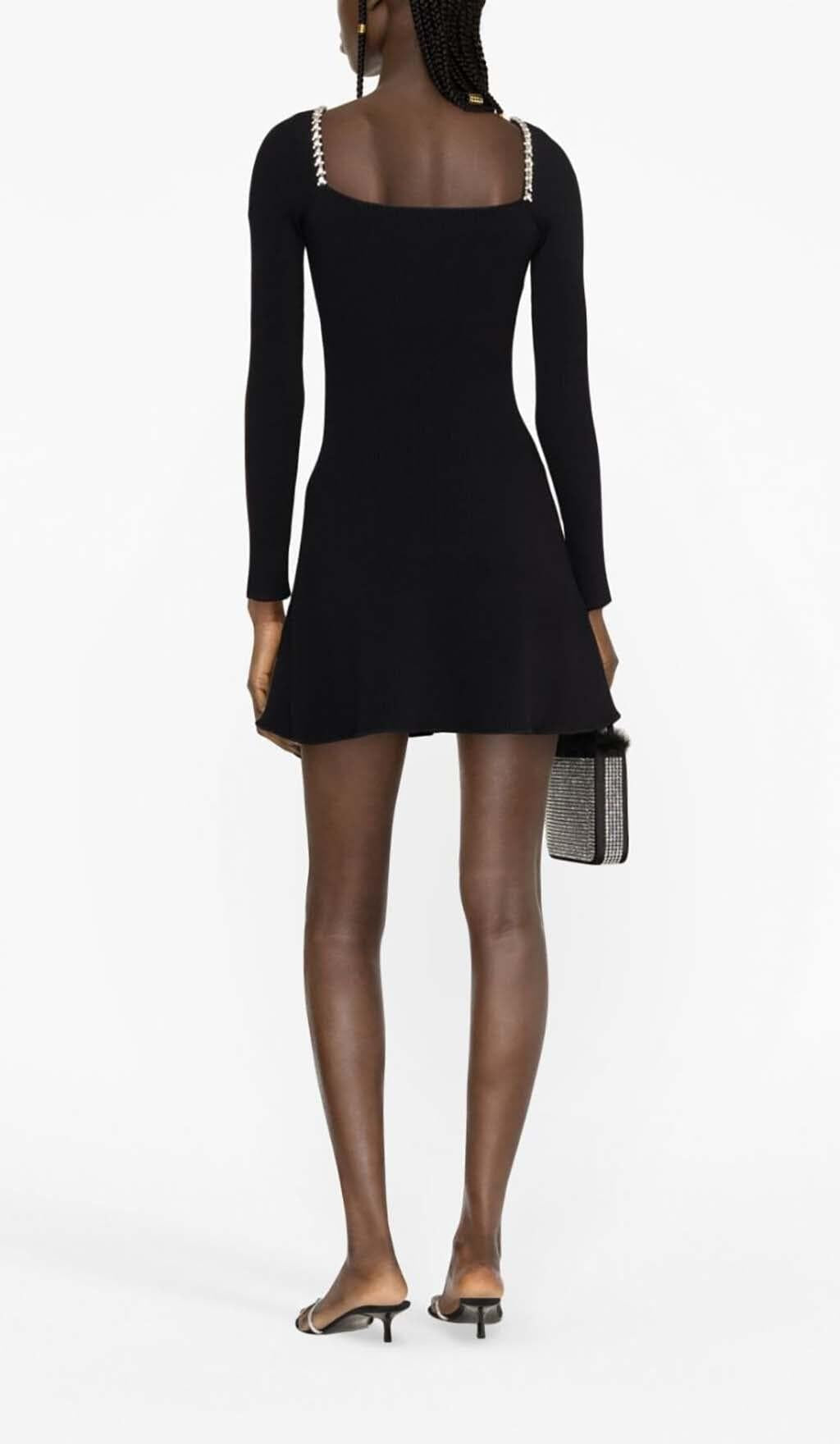 KNIT DIAMANTE MINI DRESS IN BLACK