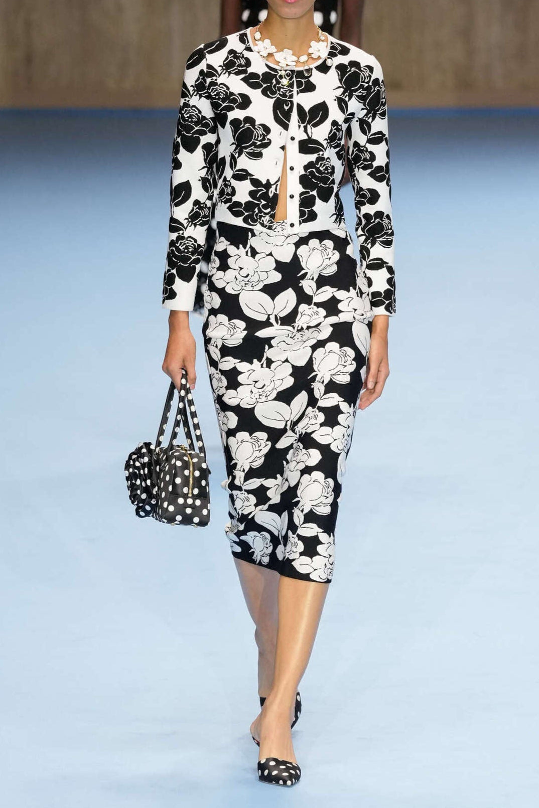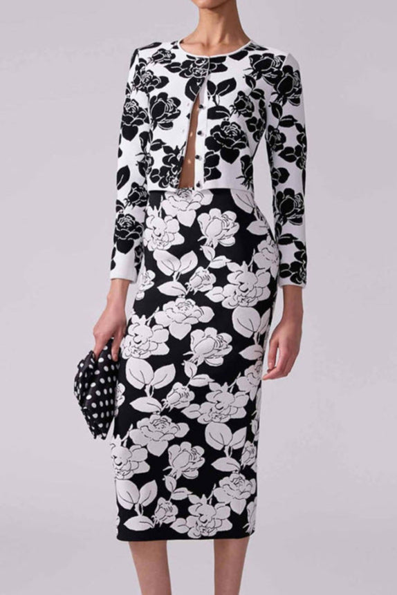 knit floral jacquard midi pencil cardigan skirt set