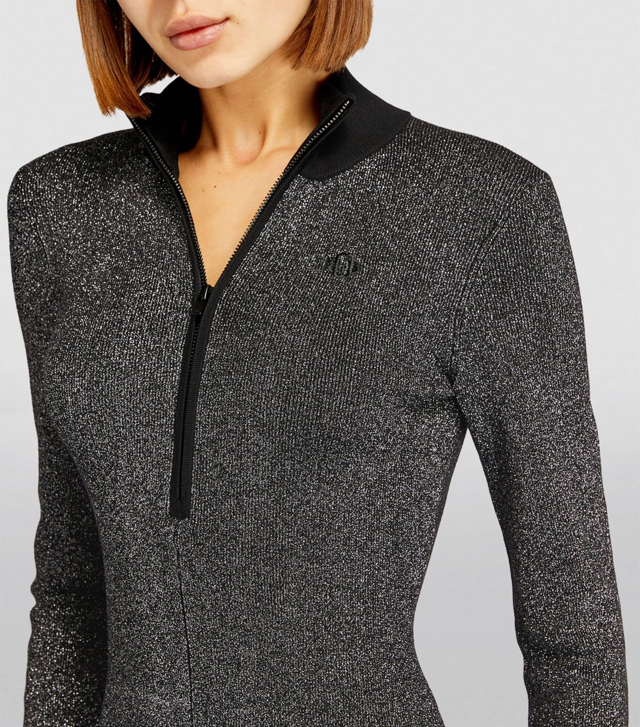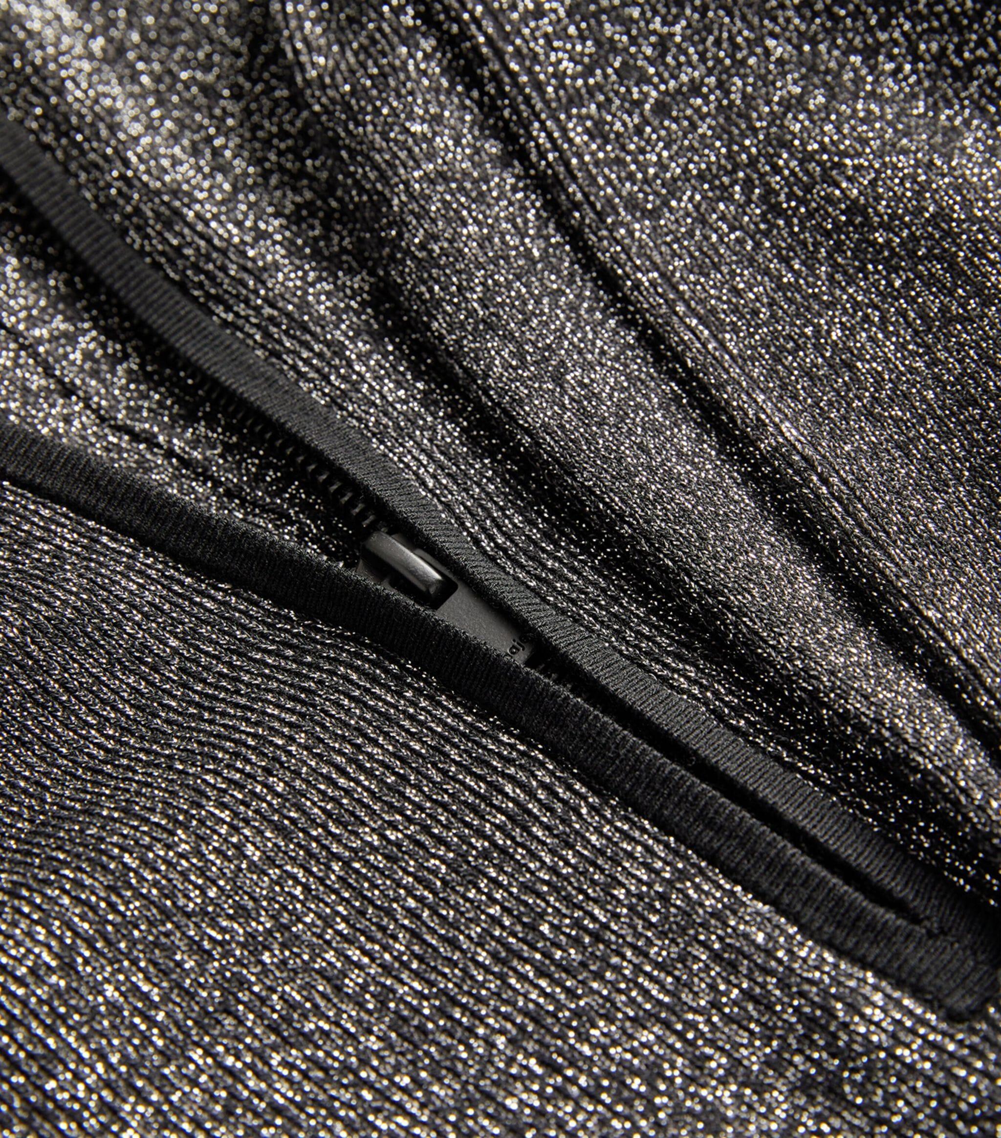 • Main material: 64% viscose/14% polyamide/14% polyester/7% metallic fibers/1% elastane; collar: 58% viscose/23% polyester/18% polyamide/1% elastane; embroidery: 100% polyester; zip: 58% viscose/23% polyester/18% polyamide/1% elastane