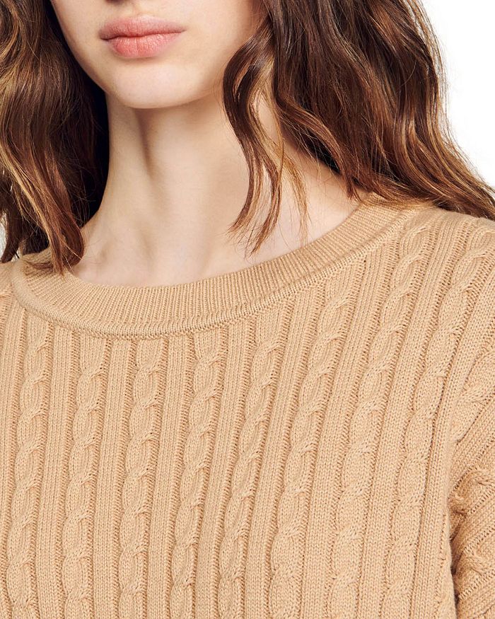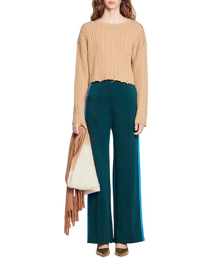 • Allover cable knit with distressed hem detailing