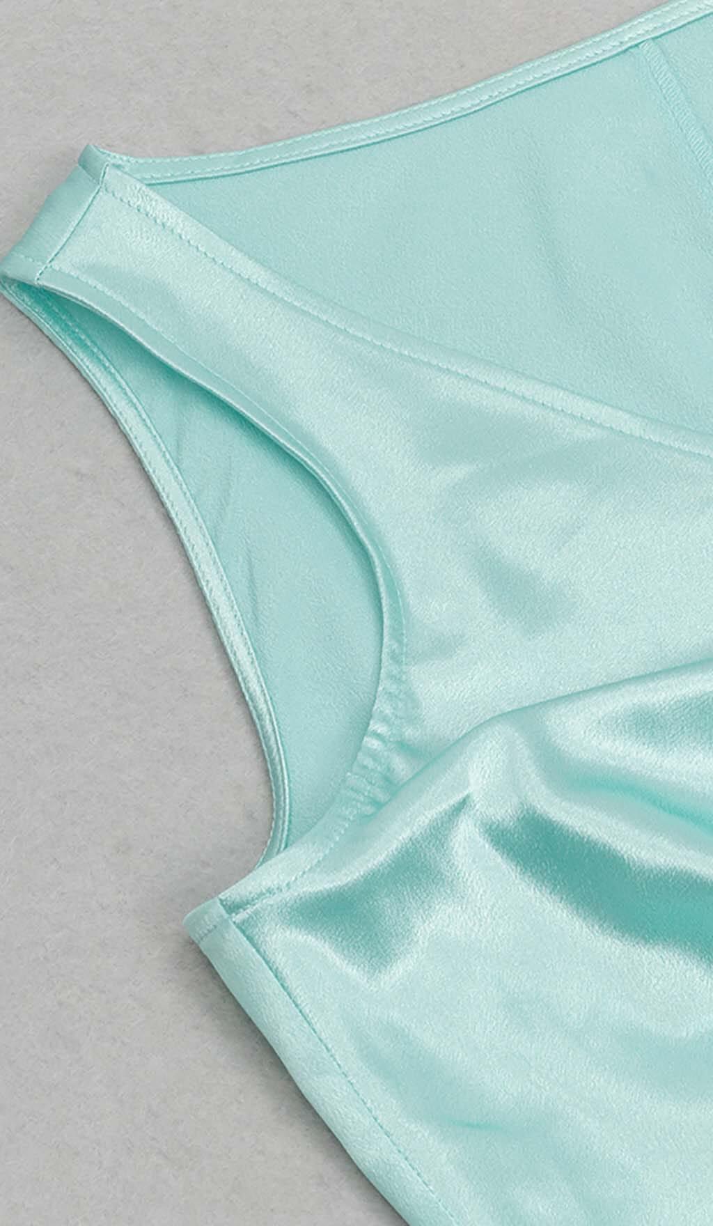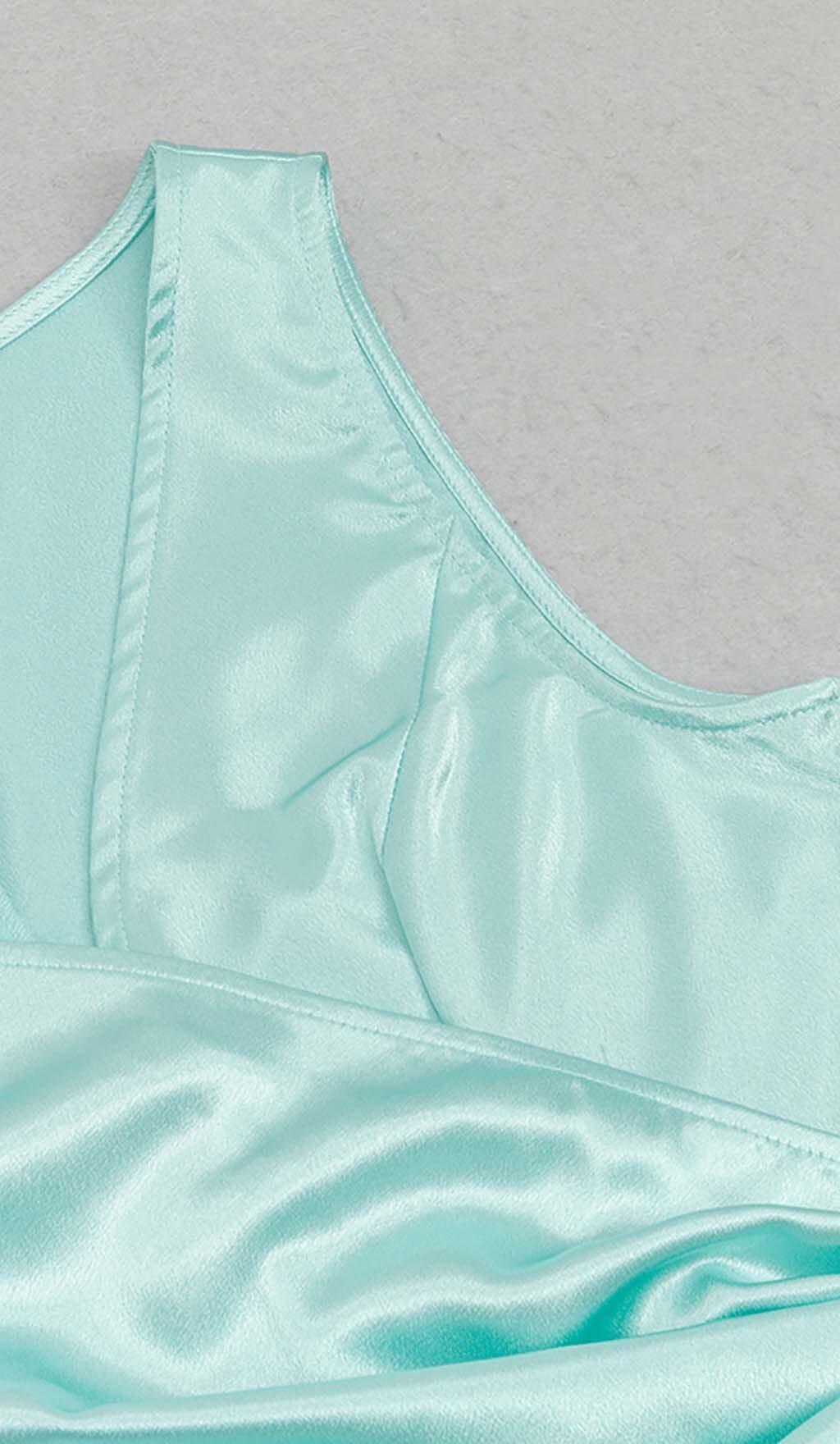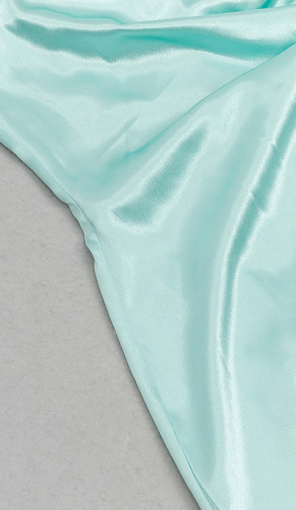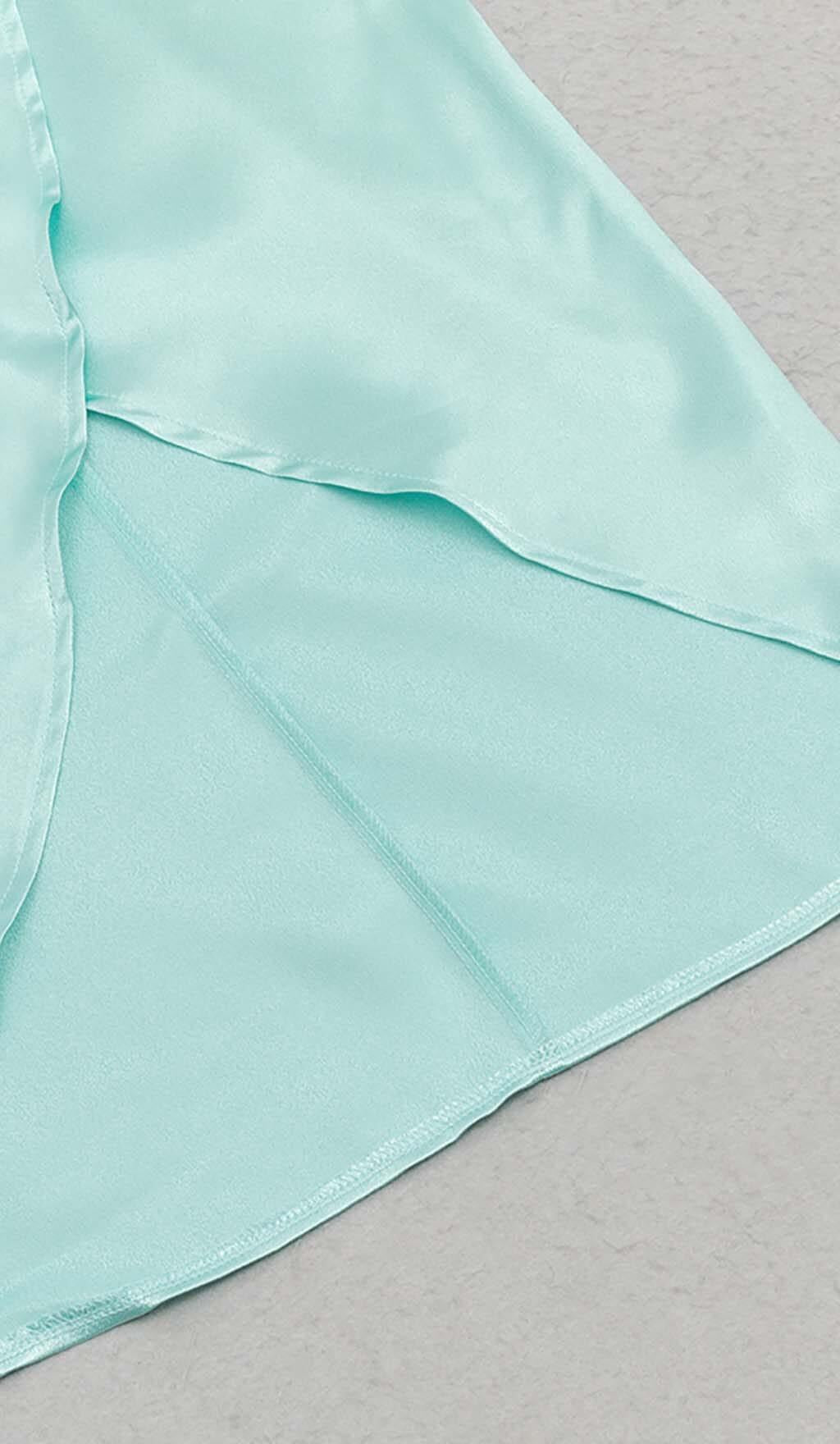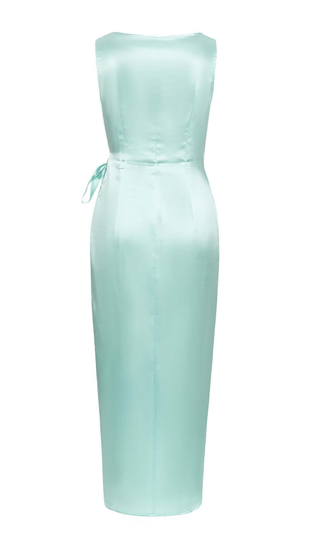 KNOT SIDE SATIN MIDI DRESS IN MINT