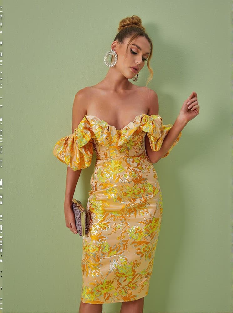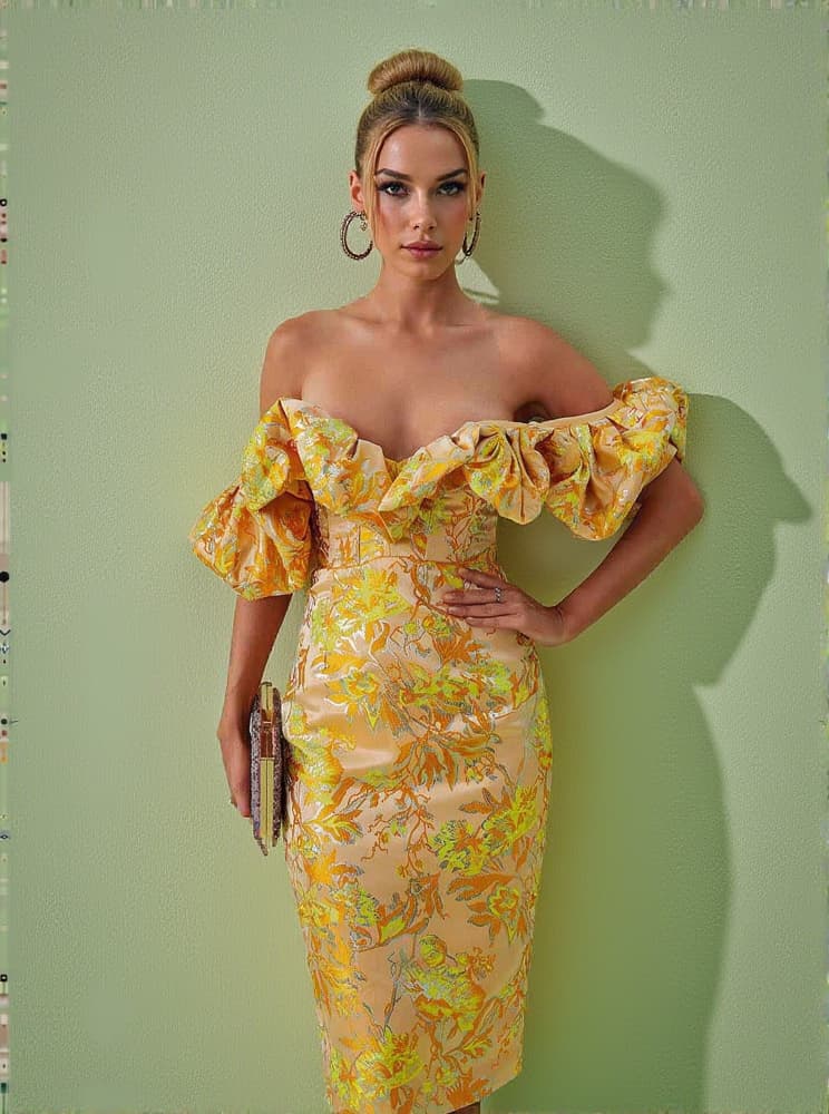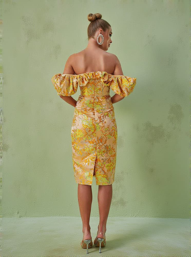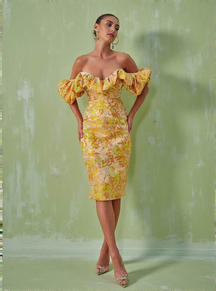 Kore Off Shoulder Jacquard Midi Dress