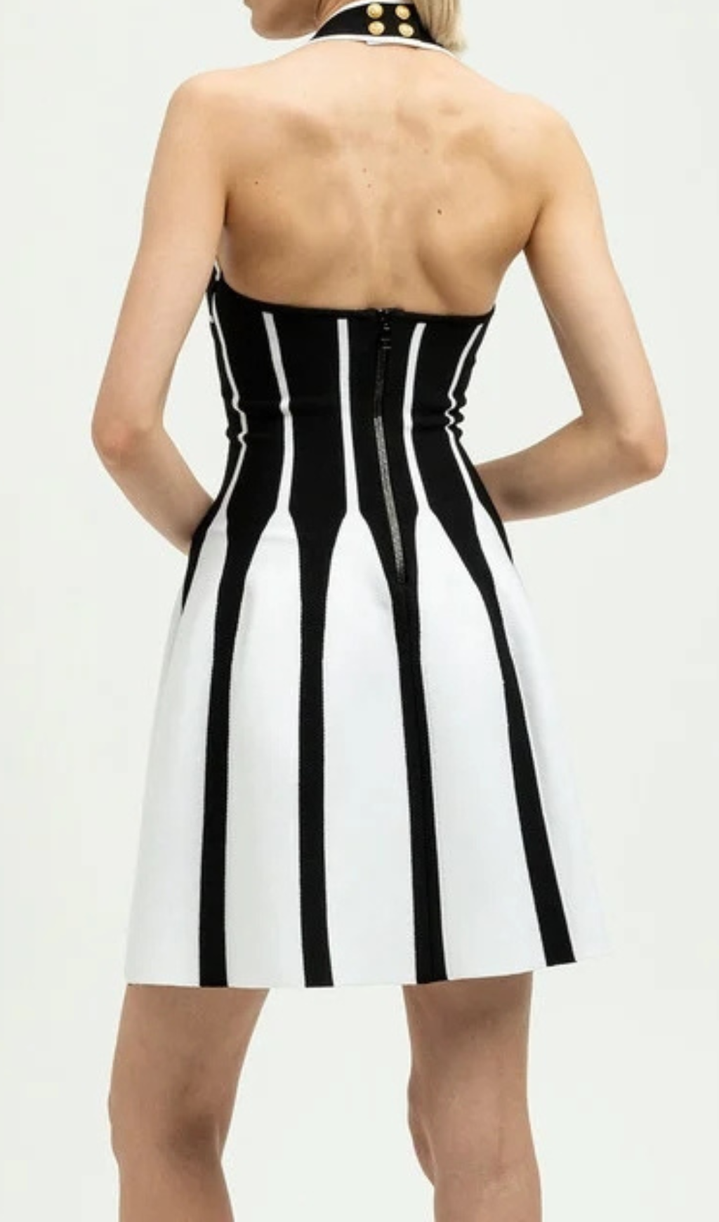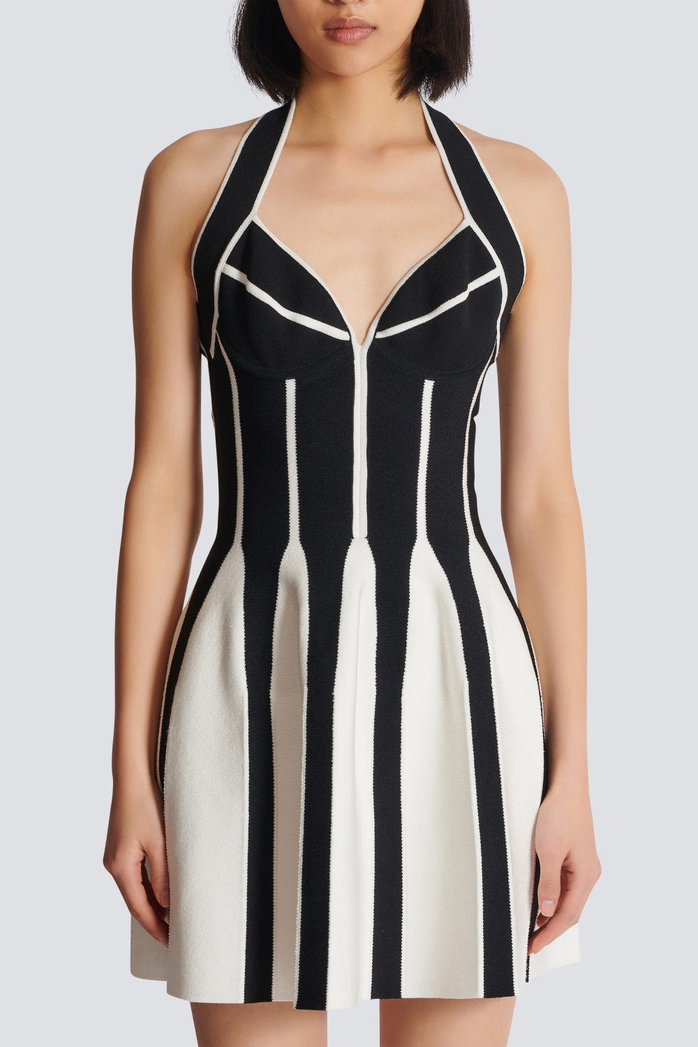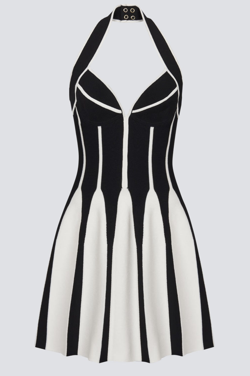 Be the envy of the party in this Kriaden Flared Halter Knit Mini Dress! The perfect combination of trendy and comfortable, this dress features a flattering halter neckline and a flared skirt that will have you twirling all night long. Stay effortlessly stylish and confident in this must-have dress.