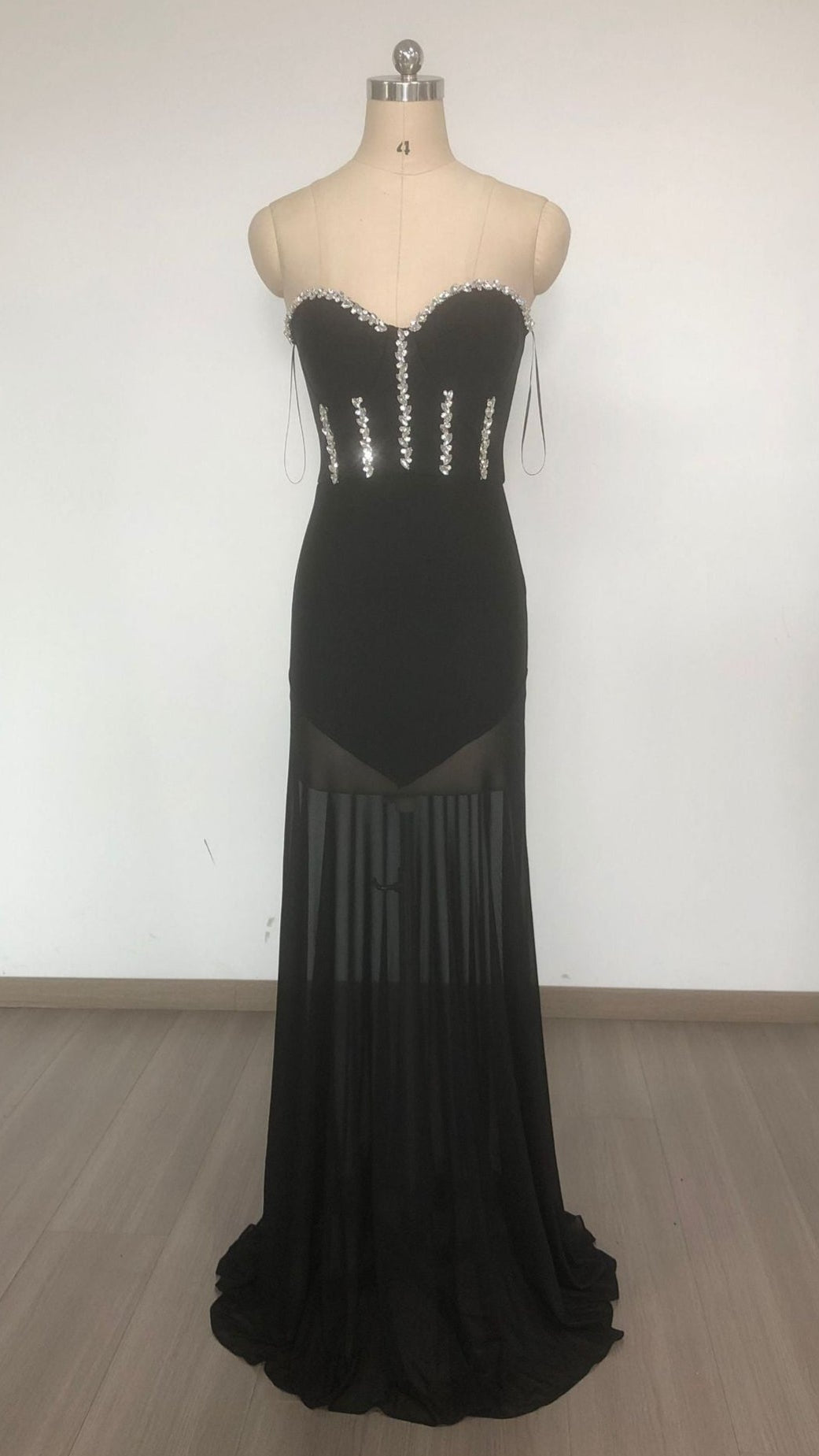 KRISTIN BLACK STRAPLESS MESH BANDAGE MAXI DRESS