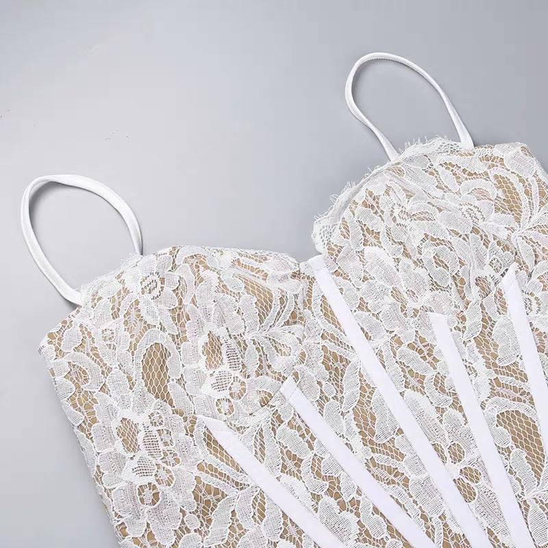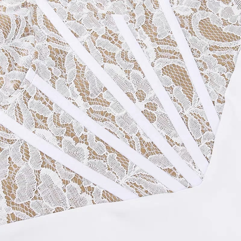 Expertly crafted with intricate lace and an asymmetric ruffle design, the Lace Asymmetric Ruffle Midi Dress is a must-have for any fashion-forward woman. Its elegant silhouette and timeless lace detailing make it perfect for any special occasion, while the asymmetrical hem adds a unique touch. Elevate your wardrobe with this stunning dress.