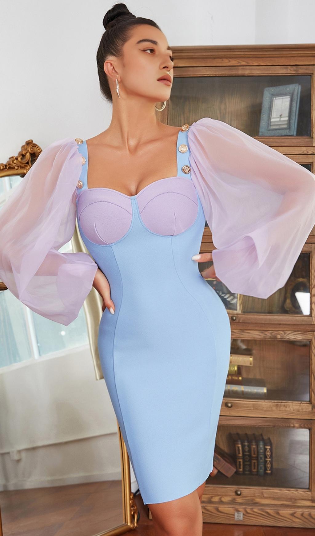 Experience the ultimate in sexiness and allure with our Lace Bandage Bodycon Mini Dress. This dress is designed to make you feel like the most attractive woman in the room. Its unique color patchwork and mesh lace sleeves create a captivating look that is sure to turn heads.