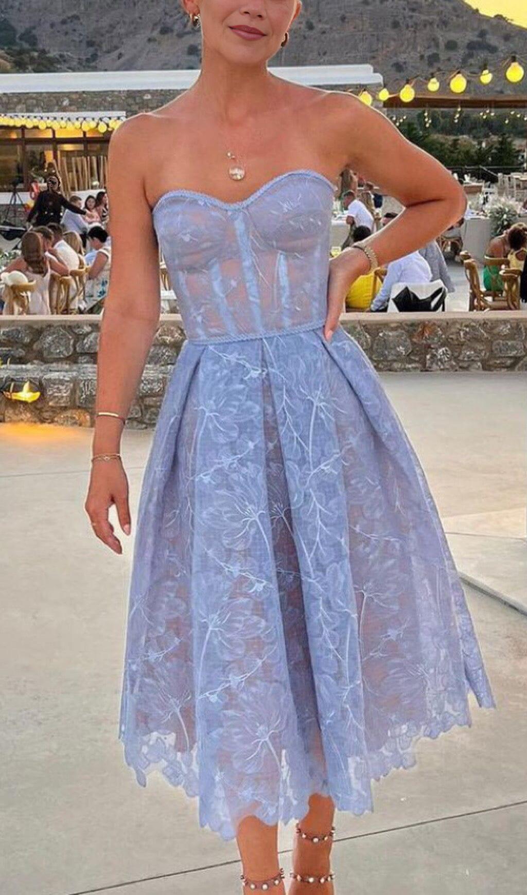 LACE BANDEAU MIDI DRESS IN BLUE