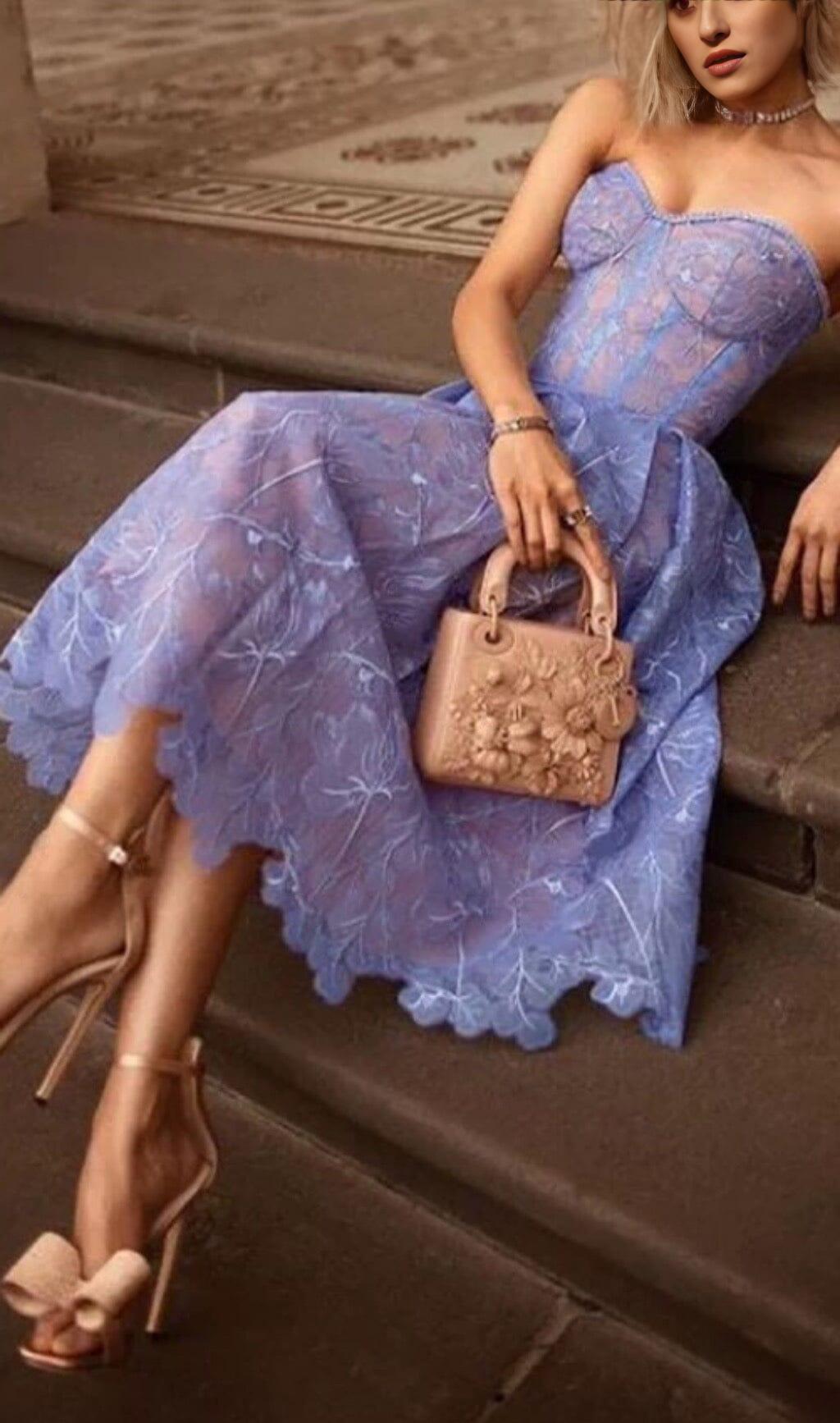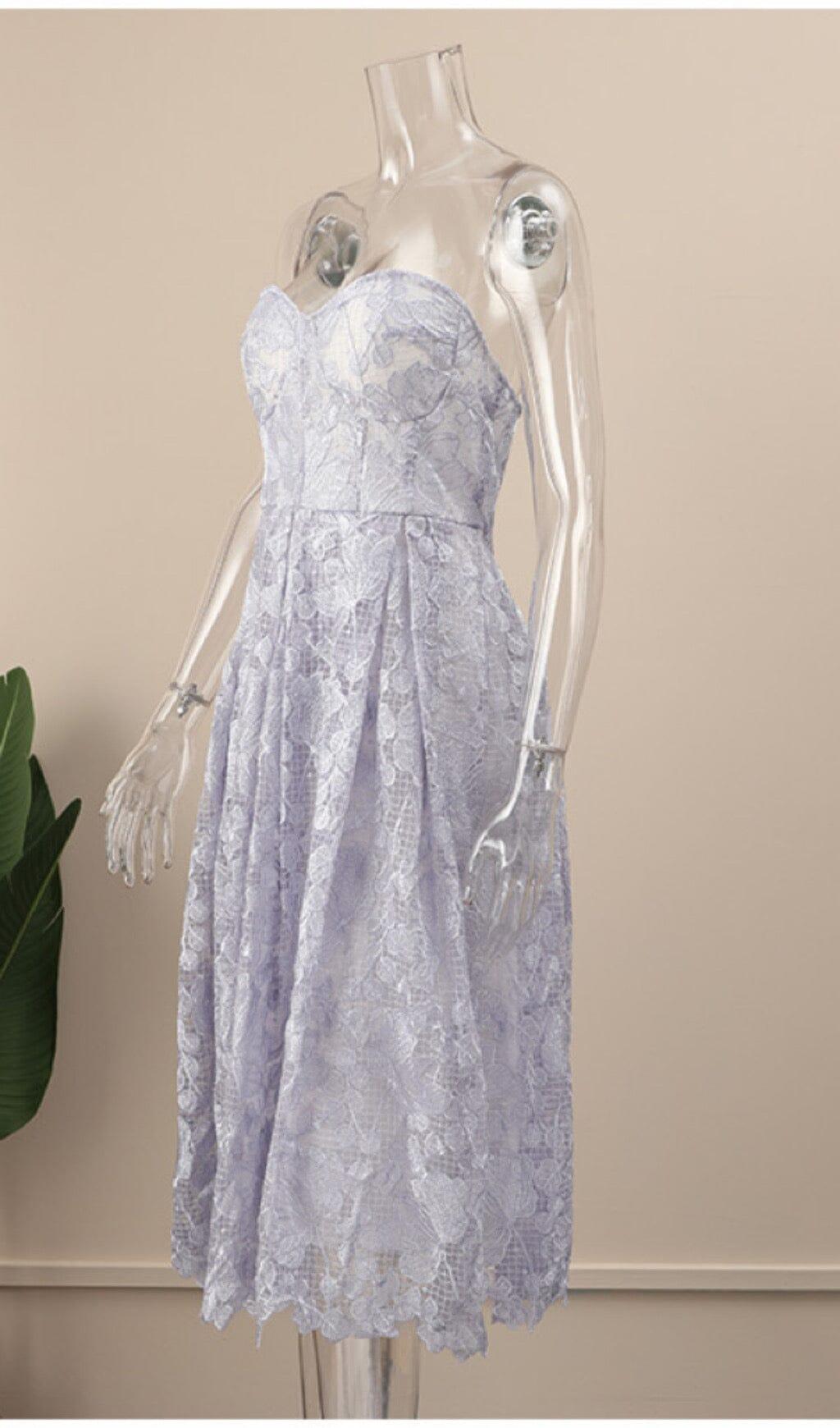 Unleash Your Elegance with our Lace Bandeau Midi Dress in Blue