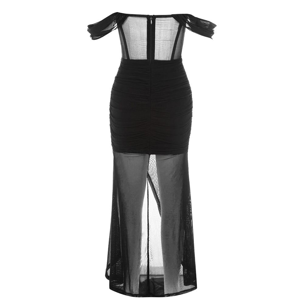 The Lace Bandeau Ruched Dress in Black is the epitome of elegance and sophistication. With its stunning lace bandeau top and delicate straps that accentuate the shoulders and collarbone, this dress is perfect for any special occasion. The ruched detailing gives it a figure-hugging fit, creating a streamlined silhouette that flatters the curves.