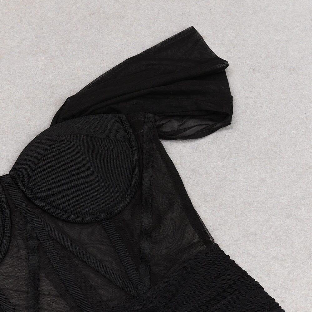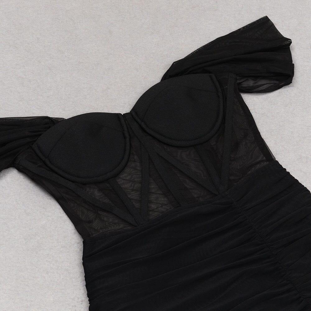 Lace Bandeau Ruched Dress in Black