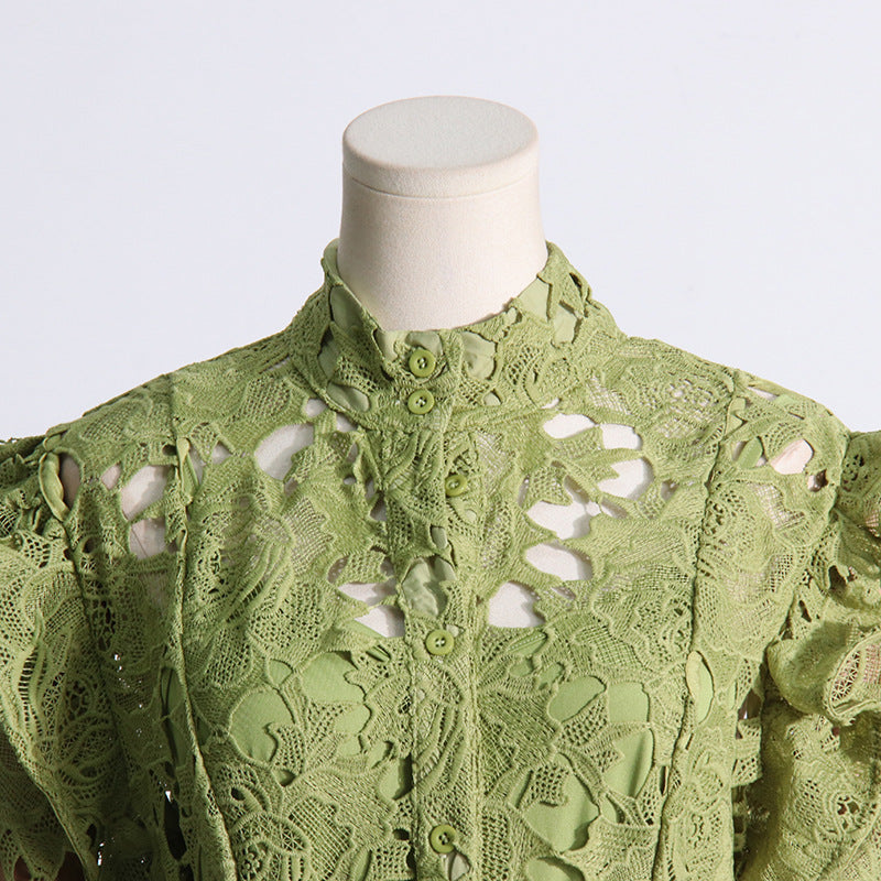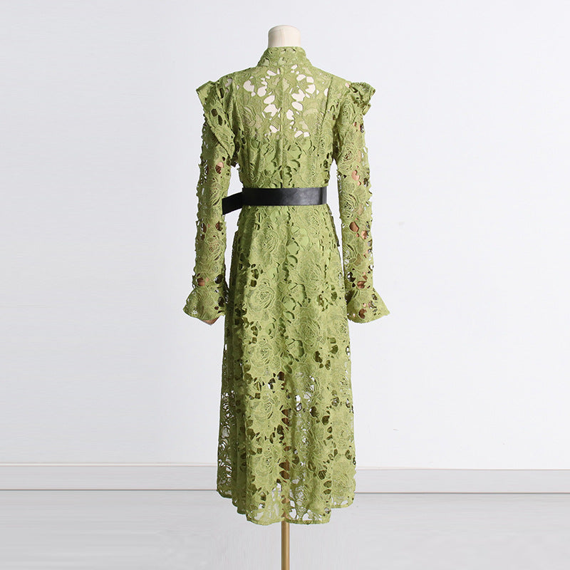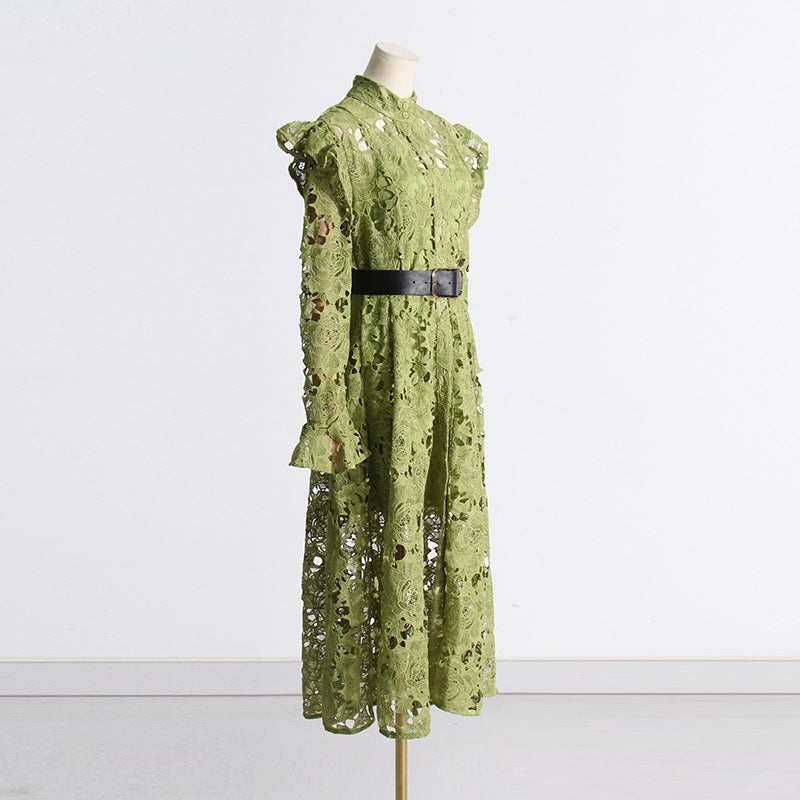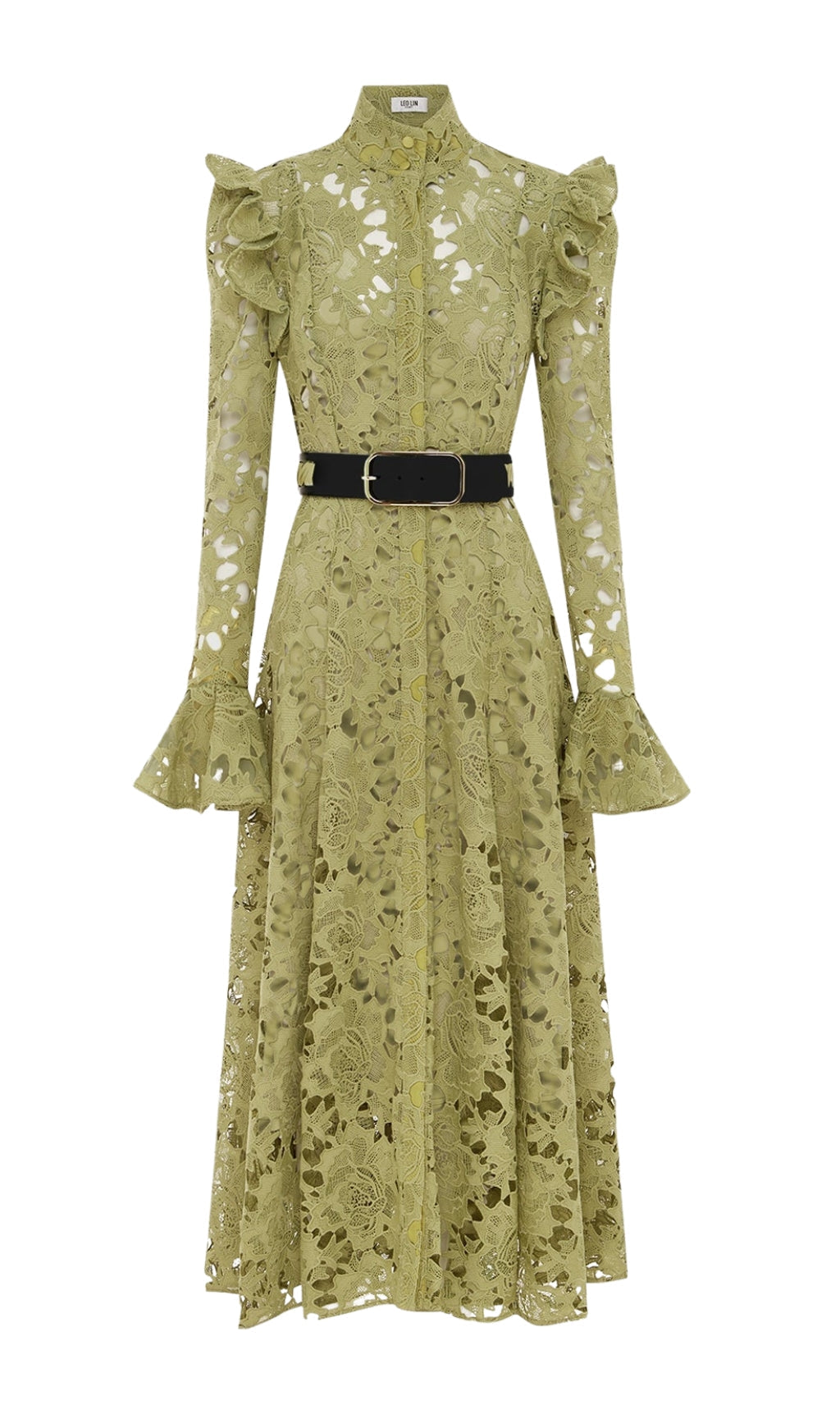 ADORA OLIVE LACE SLEEVE MIDI DRESS