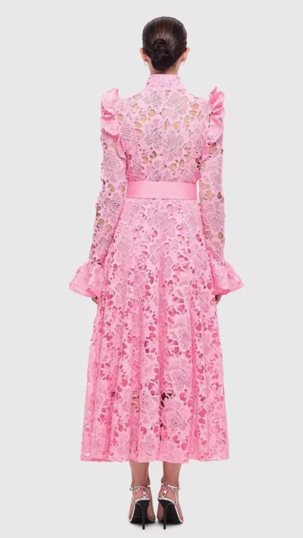 LACE BUTTERFLY SLEEVE MIDI DRESS IN PINK