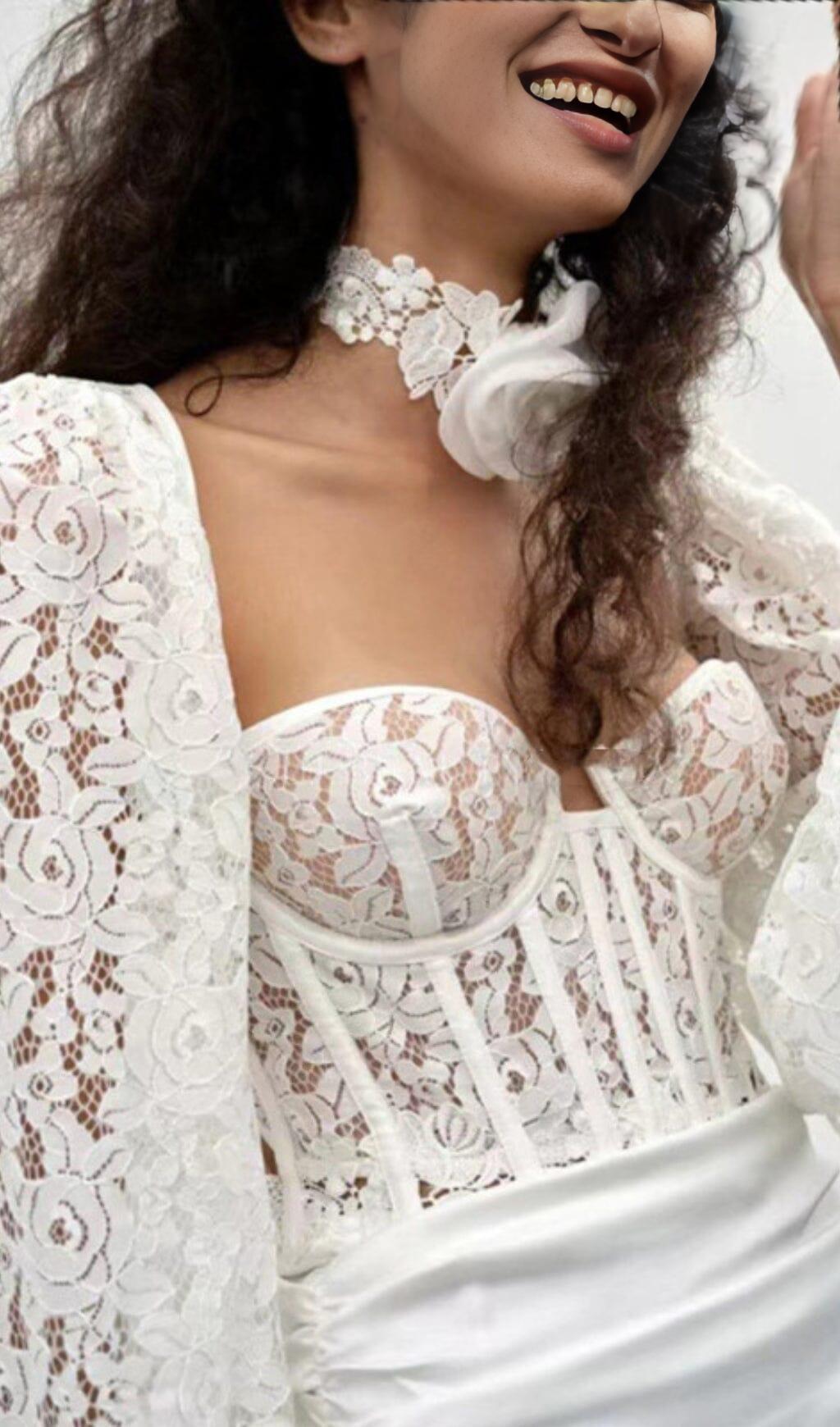 LACE CORSET MIDI DRESS IN WHITE