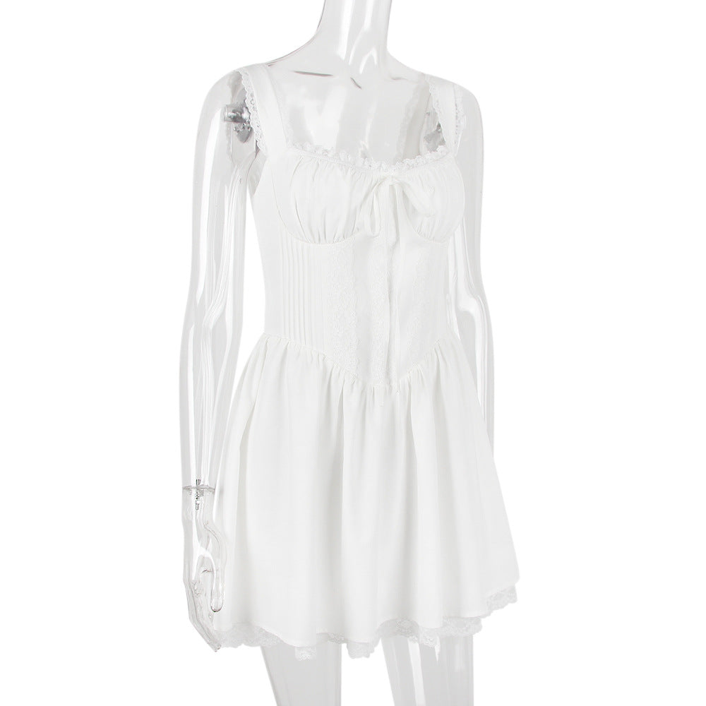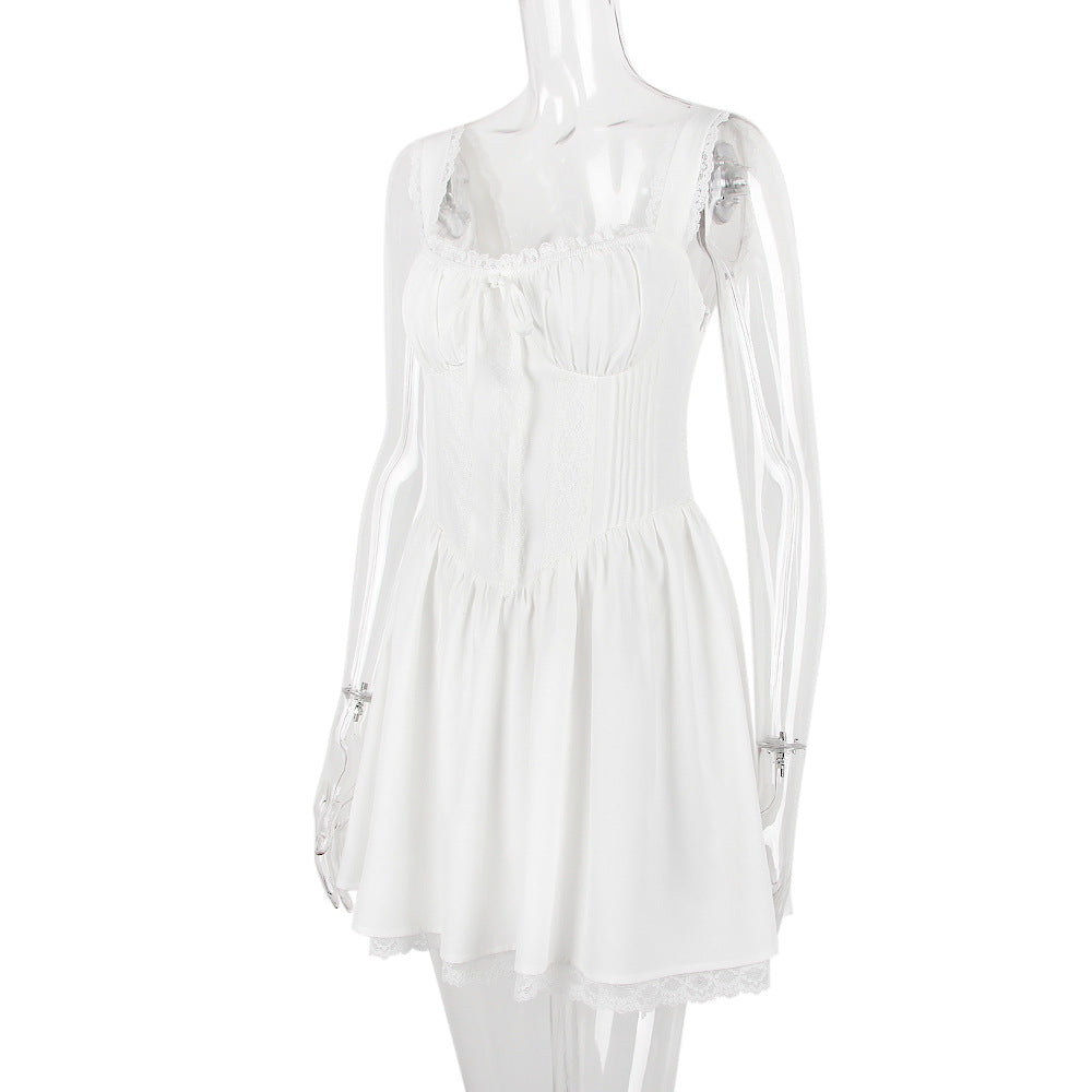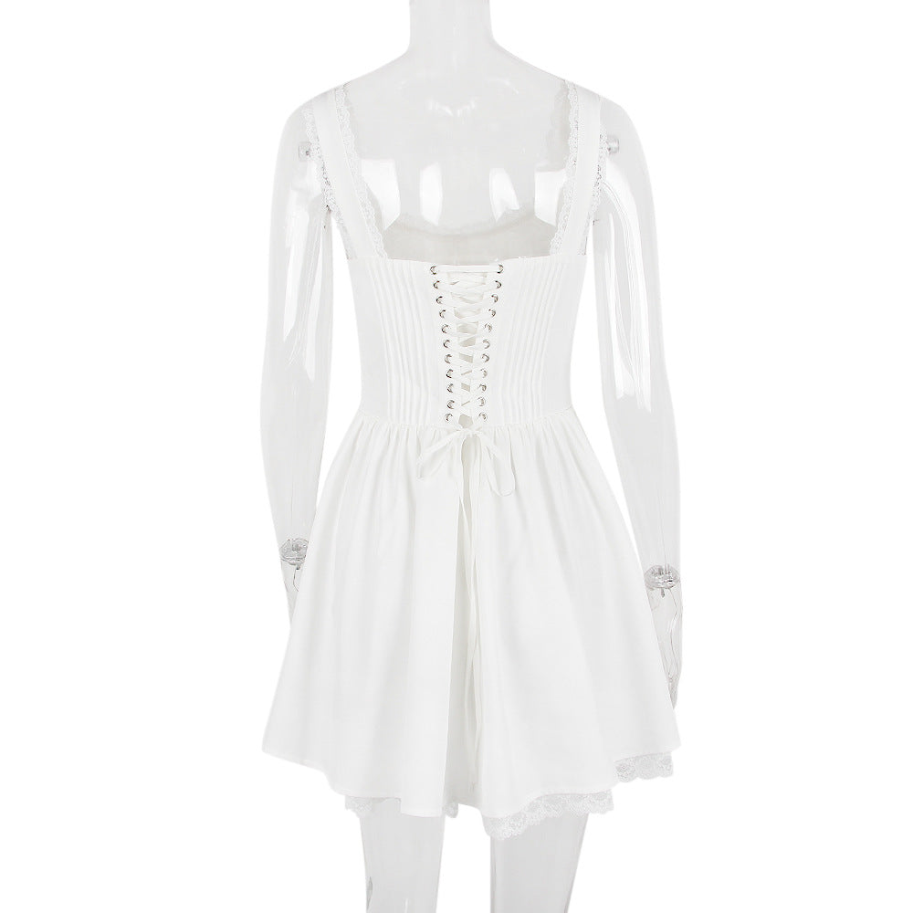 Look glamorous in this elegant lace corset mini dress. Constructed from soft lace fabric, it features a fitted waist corseting with a pleated skirt and full lining for a sophisticated look. Perfect for a night out or any special occasion.