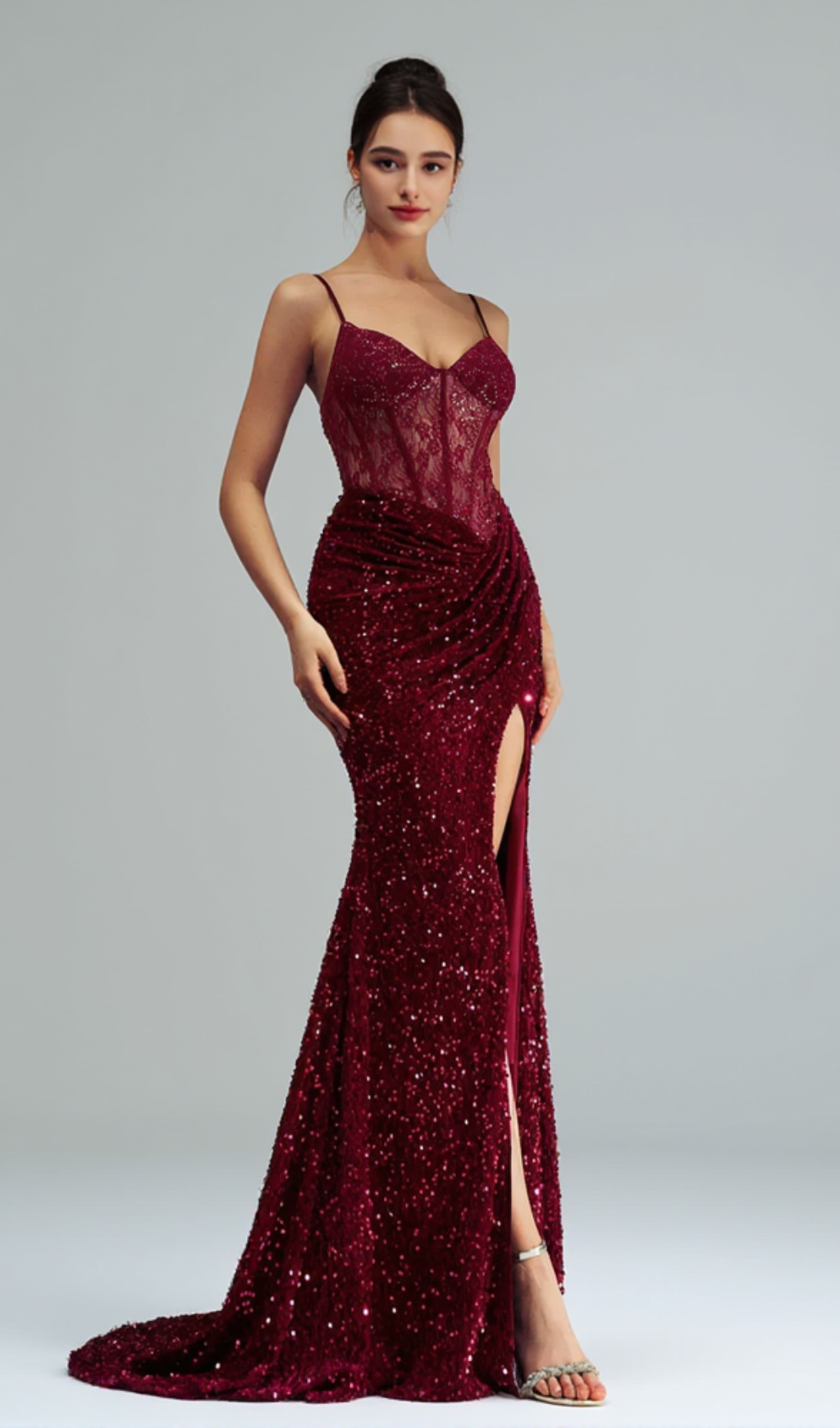 Dazzle in the CHAIA LACE CORSET SEQUIN MAXI DRESS. The intricate lace corset and sparkling sequins add a touch of elegance to this stunning gown. Expertly crafted with high-quality materials, this dress will make you feel confident and beautiful for any special occasion.
