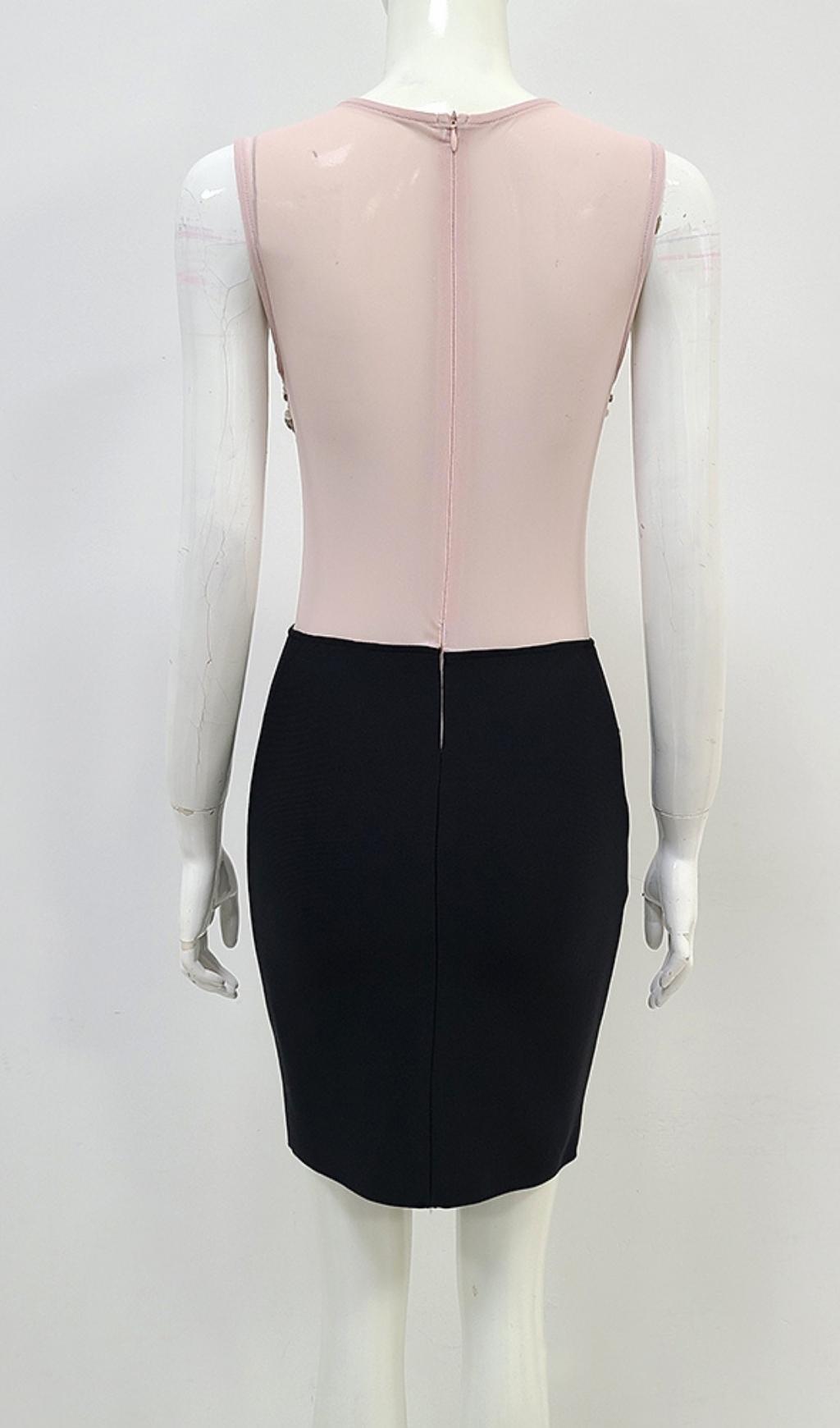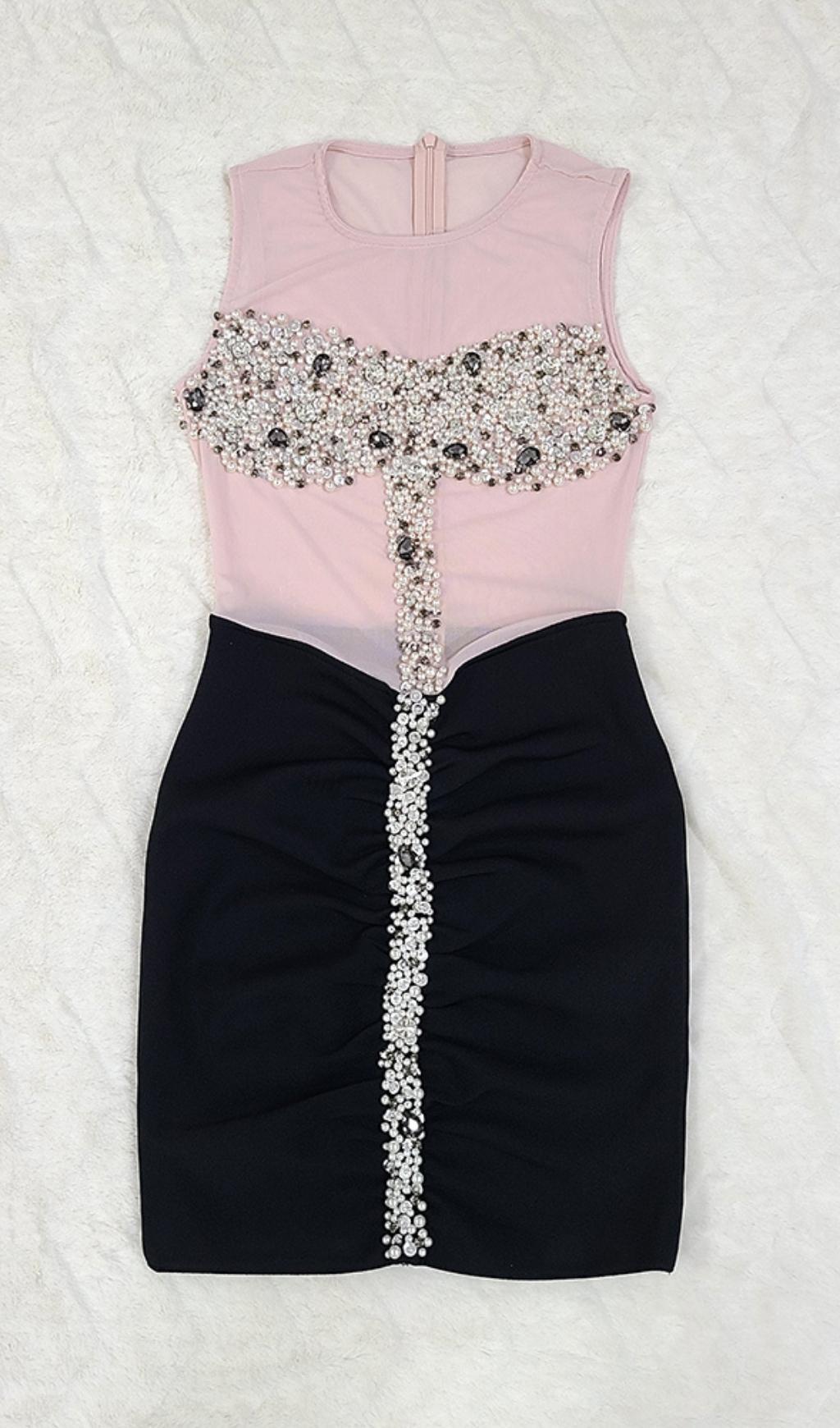 LACE CRYSTAL MIDI DRESS IN BLACK