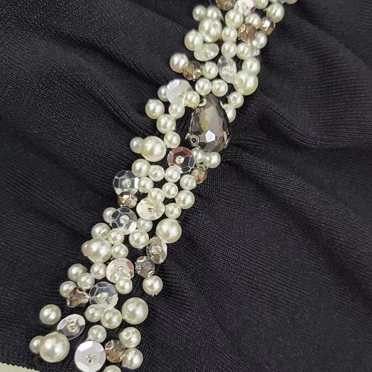 Complete your look by pairing the Lace Crystal Midi Dress with delicate mules or flat sandals. Carry a woven tote to add a touch of sophistication. This dress effortlessly combines comfort and style.