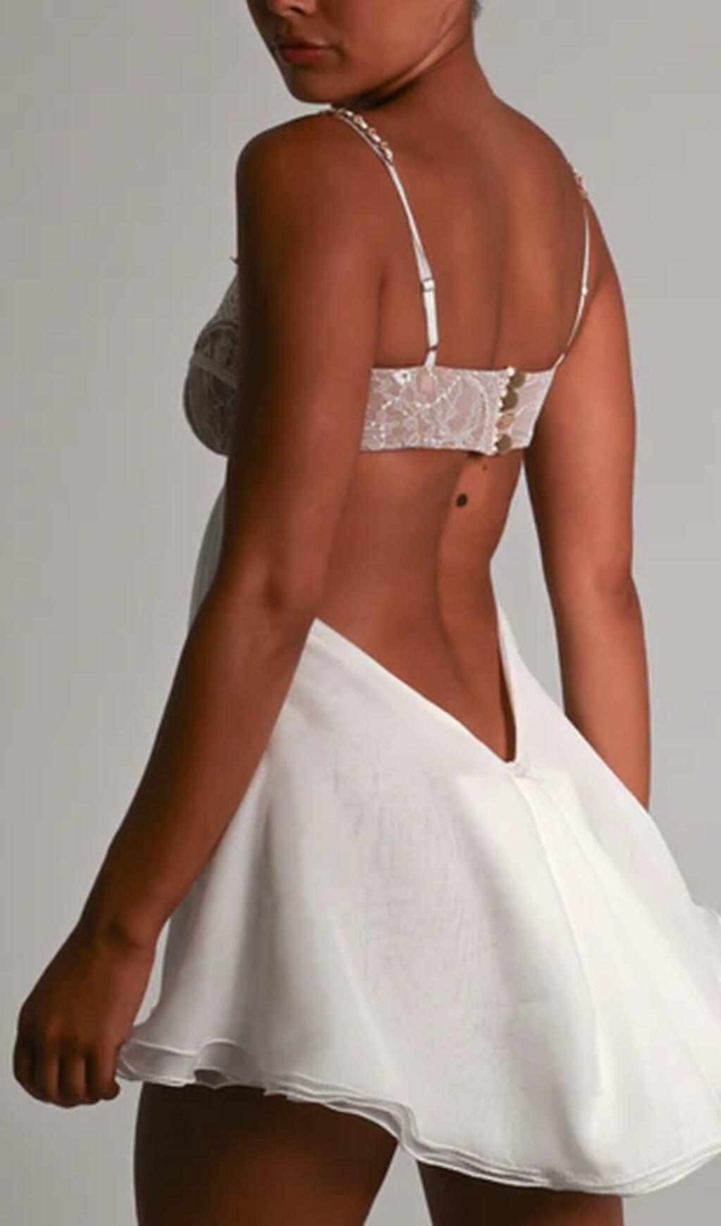 Cut Out Swing Style Chiffon Mini Dress with Lace Bralette and Chain Strap Detail