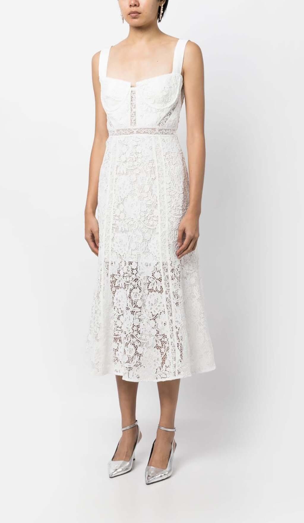 LACE DETAIL STRAPPY MIDI DRESS IN WHITE