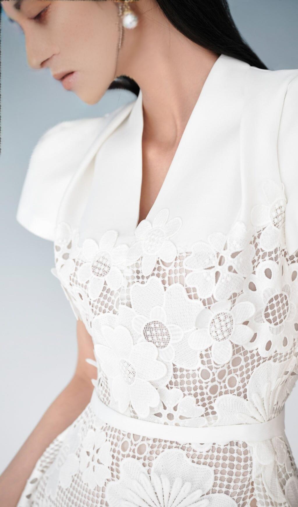 LACE HOLLOW OUT FLOWER MINI DRESS IN WHITE
