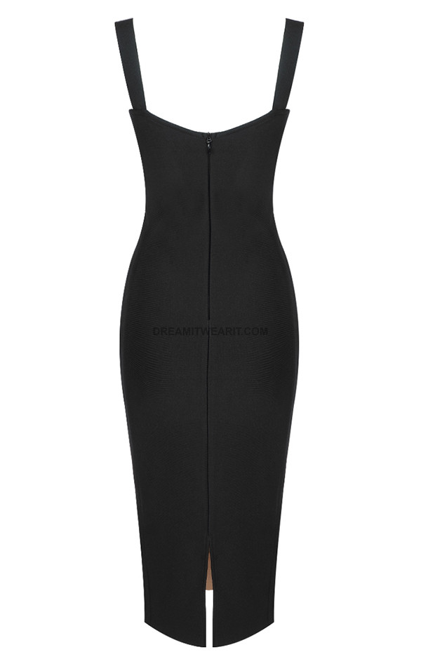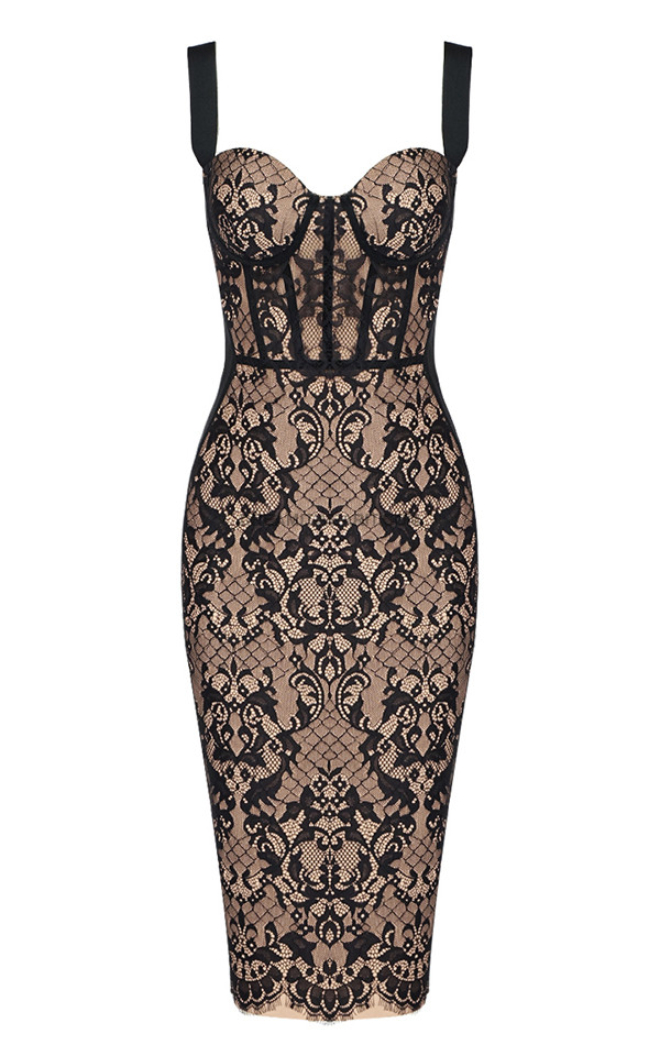 LACE INSERT BUSTIER MIDI DRESS BLACK
