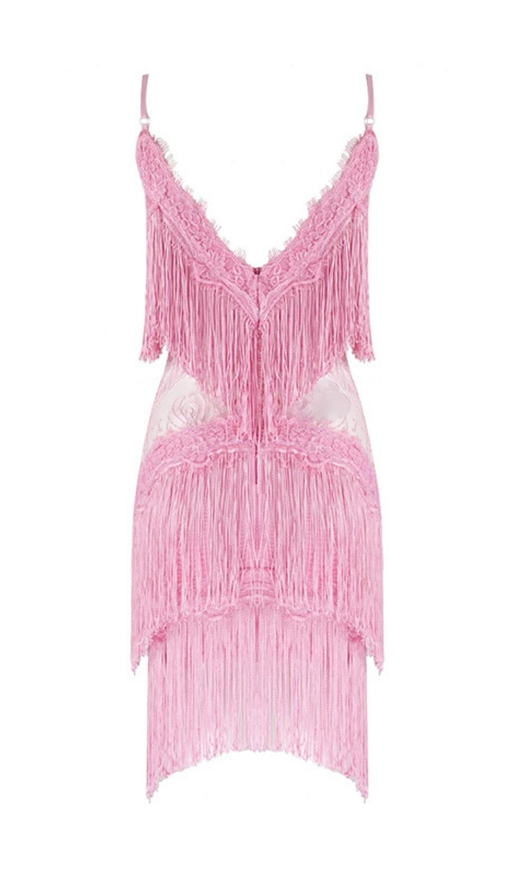 TASSEL LACE MINI DRESS IN PINK