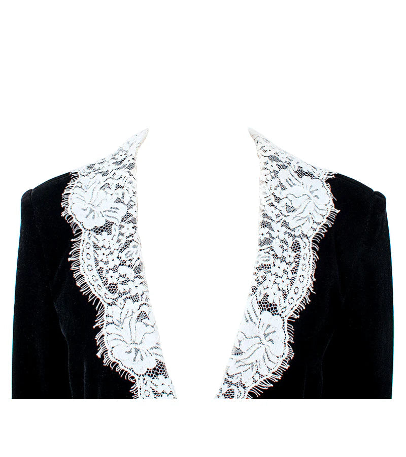 lace-neck velvet blazer in black