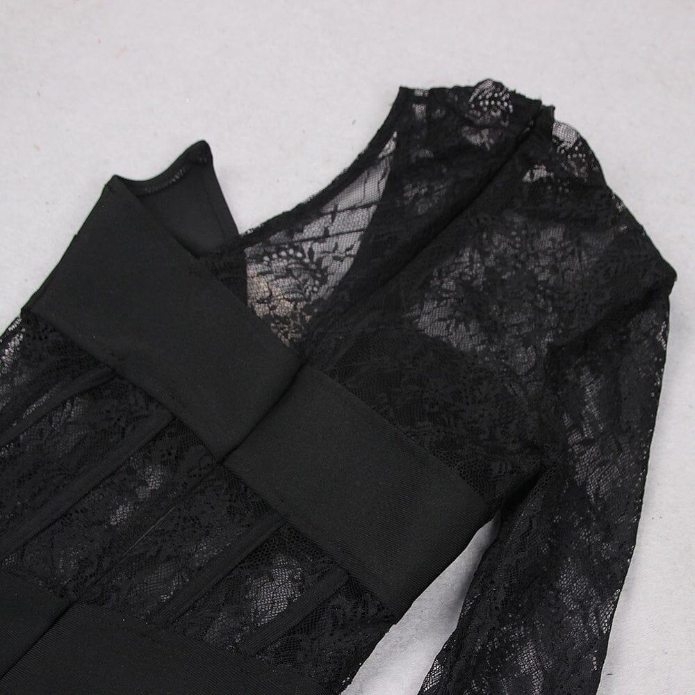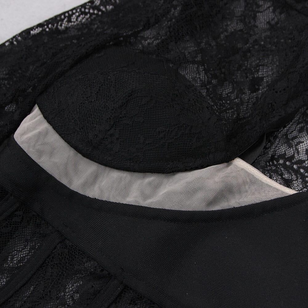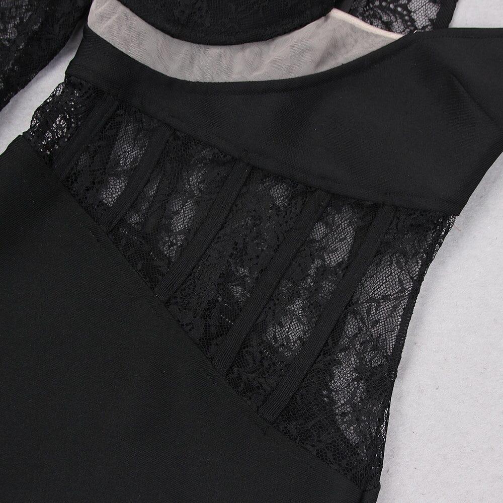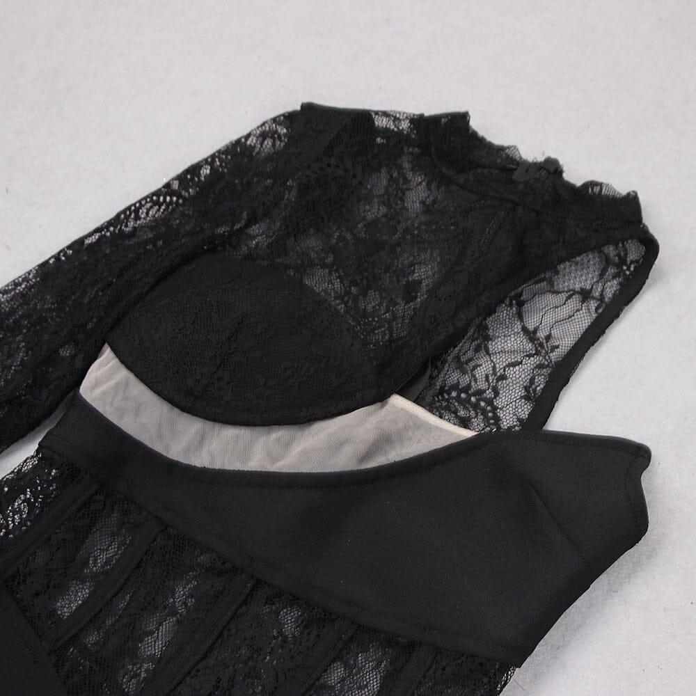Lace One Shoulder Midi Dress in Black