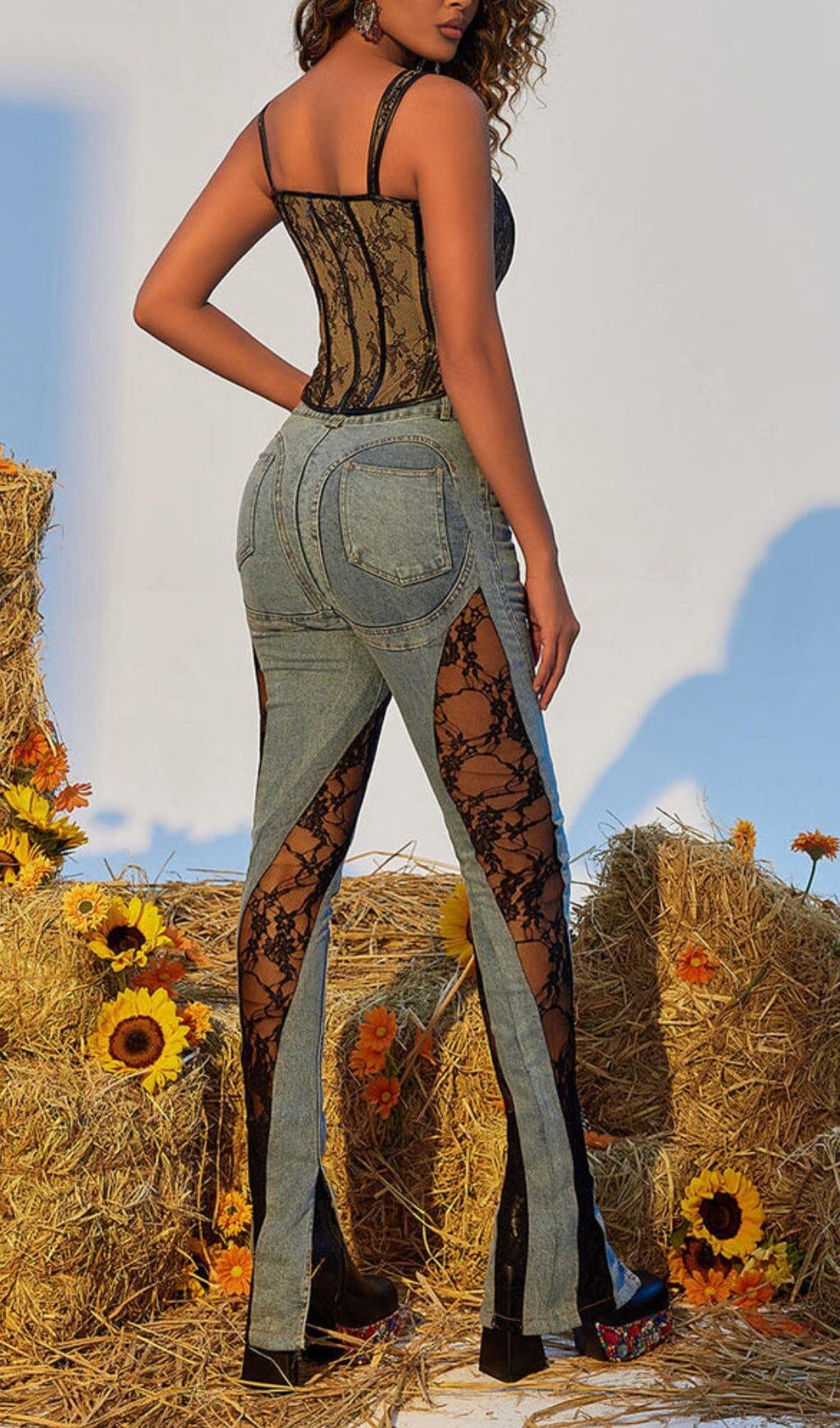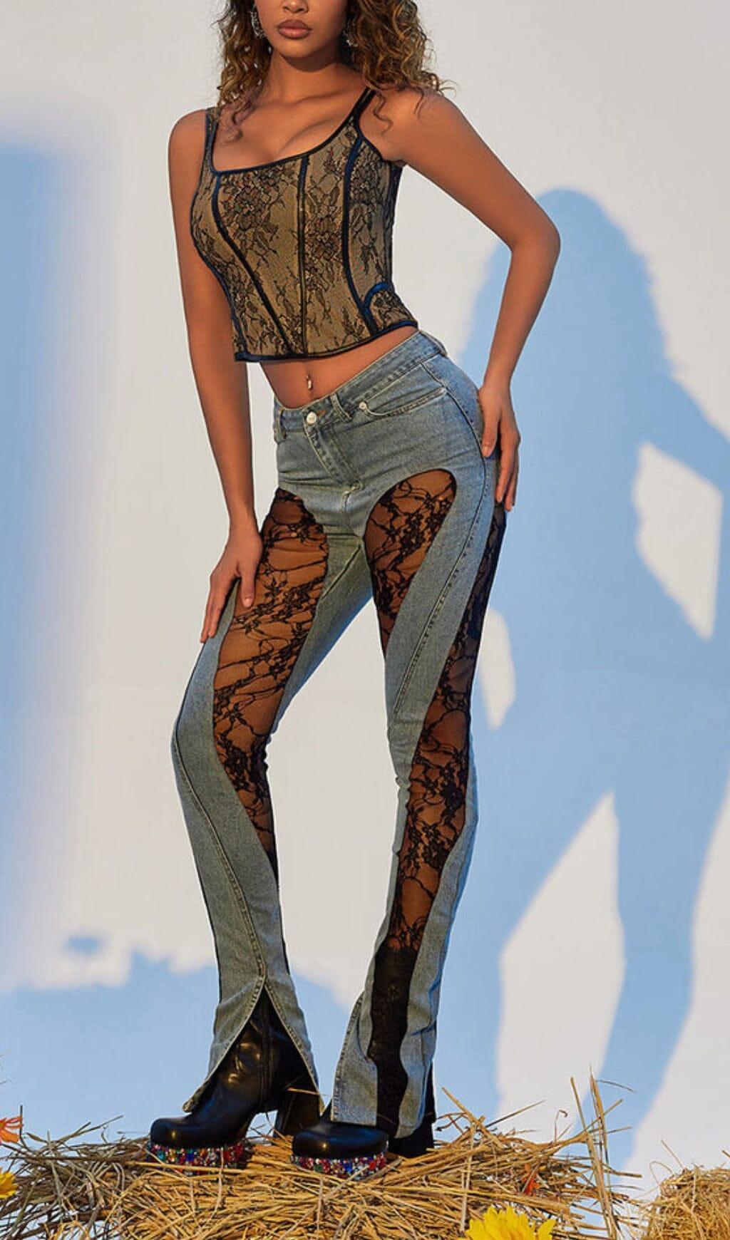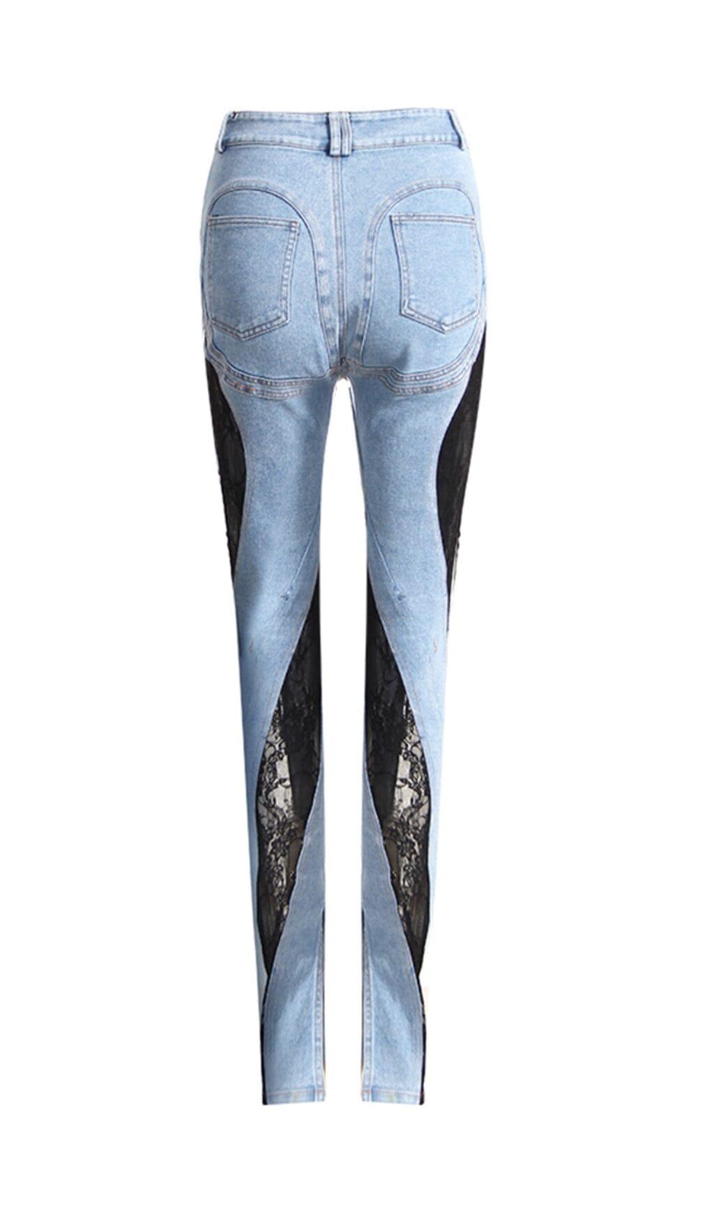 LACE PANELED HIGH RISE SKINNY JEANS