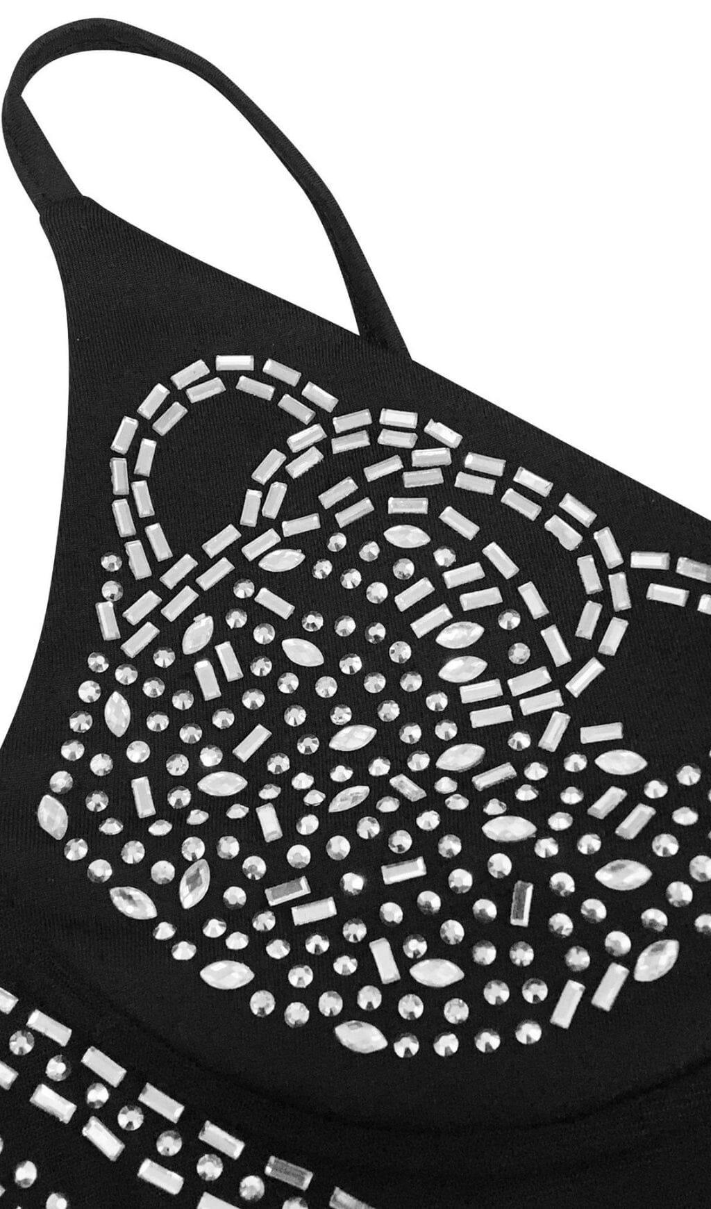 • The dress features irregular bright diamonds arranged in lines, accentuating your slender figure and showcasing your shapely physique.